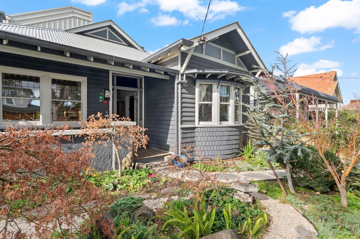 Aquesta casa rural de treballadors de 100 anys es tracta d'interiors a mida Les parets i els prestatges estan plens de magnífiques obres d'art, l'allotjament té peces vintage especialment repartides per tot arreu, els llits estan plens de roba de llit de luxe i el saló té un sofà de 3 seients del qual potser mai vols aixecar. Amb una ubicació cèntrica, a l'altre costat dels mercats del sud de Melbourne, a poca distància a peu del llac Albert Park i d'un ràpid viatge en tramvia al CBD. Tingues en compte que no hi ha televisor, així que porta els dispositius si cal.