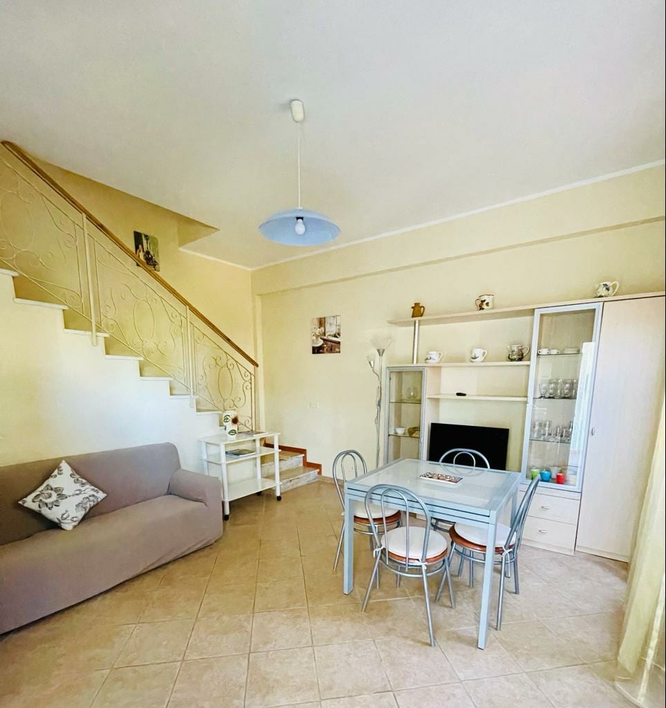 Accogliente e luminosa dimora 48mq completamente abitabile e climatizzata al 2 ed ultimo piano(noascensore) Soggiorno cucina,con accesso in terrazza con vista mozzafiato: Cenare o rilassarsi la rende unica Cameretta con letto a castello lunghezza max 1,80(NO ADULTI) e balcone camera matrimoniale con balcone,bagno con finestra -tv led 32in soggiorno -tv led 24in cameretta Bar,tabacchi,supermercato,ristoranti 70 metri dalla casa Si wifi no animali Spiaggia con ombrellone e lettini inclusi