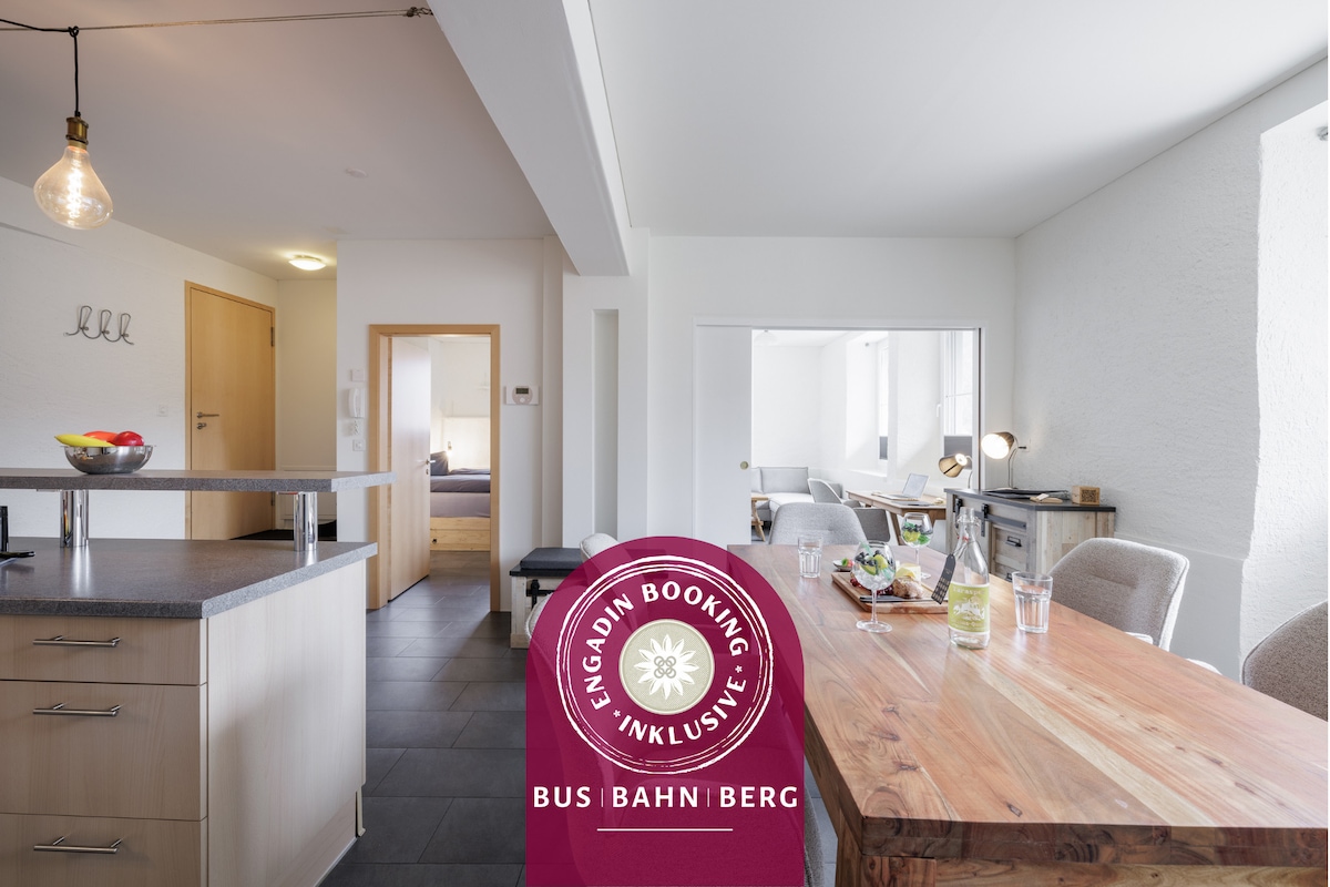 Et donem la benvinguda al teu refugi personal a la Baixa Engadina! El nostre apartament moblat amb cura a la bonica Scuol ofereix uns 50 m2 de tot el que necessites per a uns dies de relax a la muntanya, i una mica més. L'apartament està situat en una casa típica d'Engadina de 500 anys, elegantment renovada amb molta cura pels detalls: terres de fusta macissa, una combinació de colors naturals, mobles escollits a mà i tocs moderns que garanteixen una sensació d'allotjament acollidor. Aspectes destacats