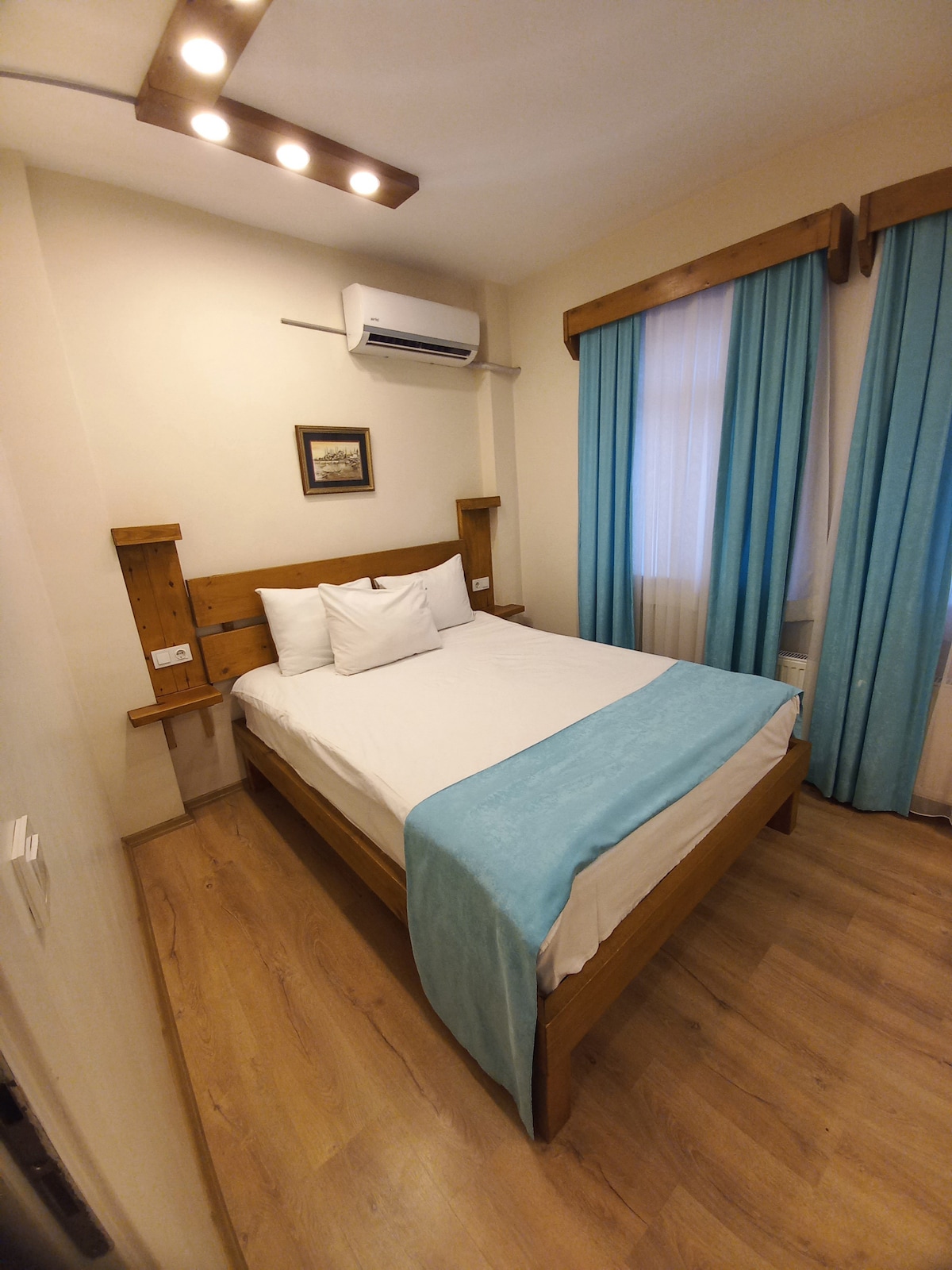 Aquest pis de luxe privat ha estat reformat recentment. Té sostres alts (3,6 metres), un bany bastant gran, un dormitori amb llit de matrimoni, sauna, jacuzzi, projector de paret (fix!) i llar de foc. És molt adequat per a estades curtes o llargues, per a parelles i famílies, i està situat a la primera planta del nostre pis en un carrer segur a Beyoglu/Taksim. Es pot arribar amb ascensor o escales. El nostre edifici està al costat del carrer Istiklal i a 10 minuts a peu del famós port de Gàlata. Internet és fibra sòlida de 100 Mbps!
