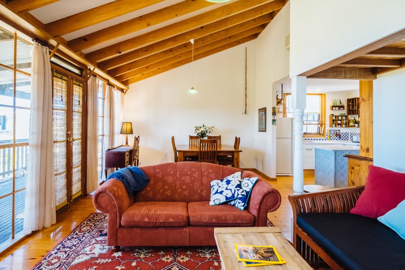 Una casa tranquil·la i privada. Les sales d'estar estan plenes de llum natural i disposen de sostres alts que s'afegeixen a l'espai. Està equipat amb mobles moderns de colors frescos per oferir unes vacances i un ambient relaxat. Fes un cafè i relaxa't al sofà , mira una pel·lícula o relaxa't al llit doble amb un llibre o treballa a l'escriptori. Seu fora del pati i gaudeix de l'ambient. Hi ha una cuina totalment equipada amb tots els electrodomèstics per fer que l'entreteniment sigui molt fàcil.