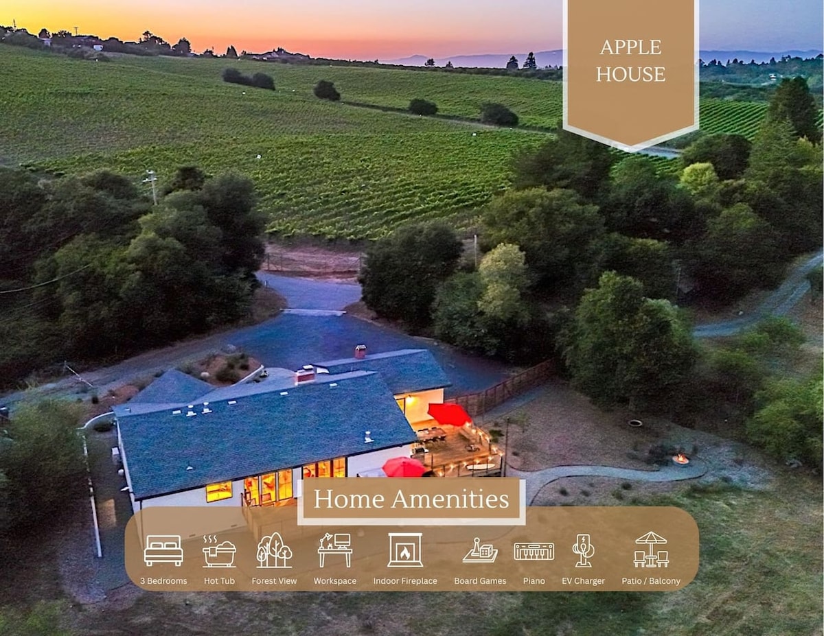 - Estada de luxe a prop de casa - Allotjament privat per a famílies amb molt d'espai, un pomar, una cuina exterior, una àmplia terrassa de fusta i una banyera d'hidromassatge per a 6 persones - Piscina gran climatitzada (escalfada amb energia solar d'abril a novembre) - Cuina de masia recentment reformada - Graner d'entreteniment èpic: Air Hockey, projector de TV de 100", dards i molt més - Cuina exterior espaiosa: graella, forn de pizza napolitana - Un ampli hort de pomes amb arbres de la varietat Gravenstein - Collir verdures de temporada dels llits de l'hort - Allotjament apte per a animals de companyia, tancat amb tanca