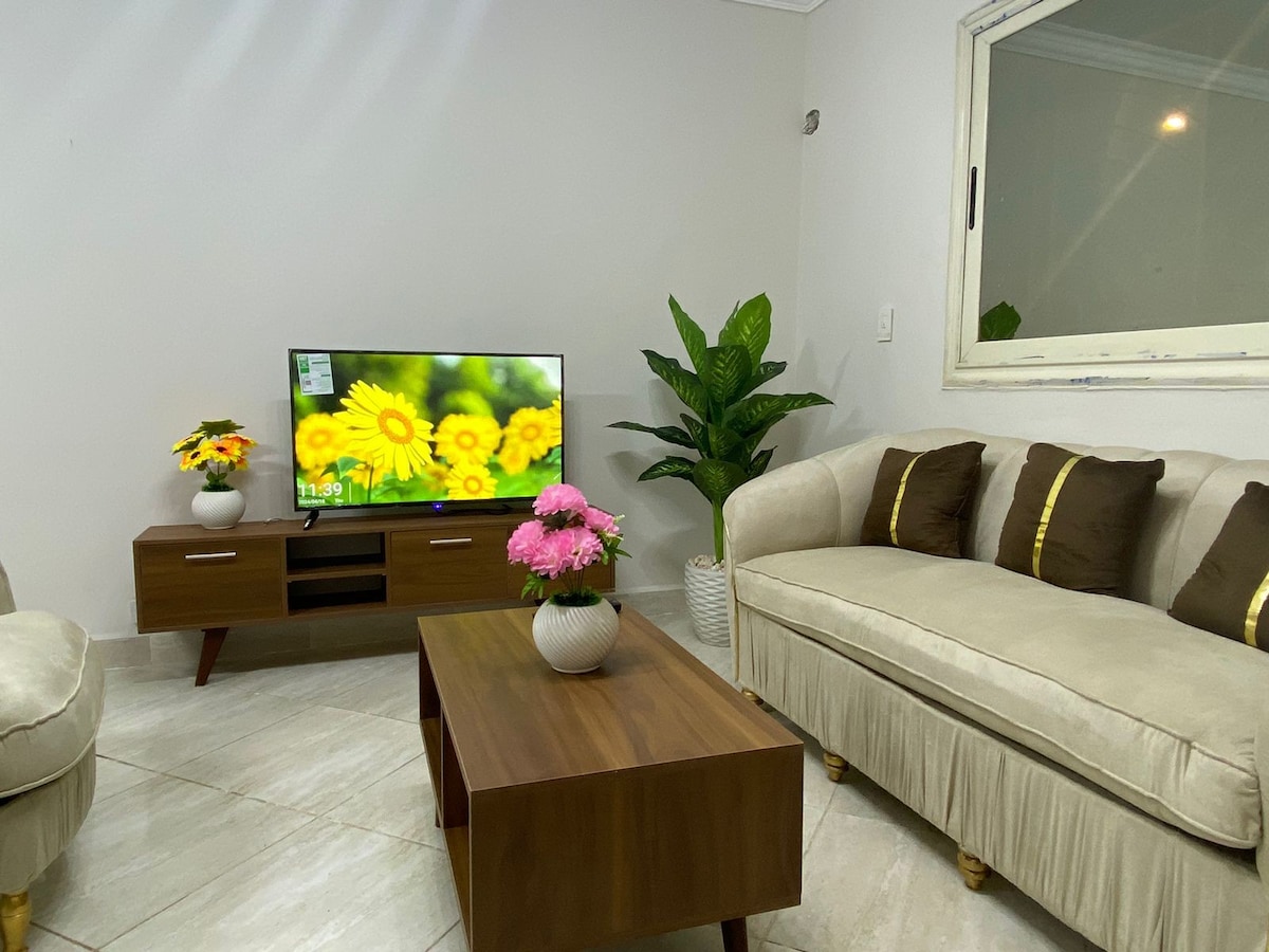 Aquest és un apartament espaiós de 2 dormitoris situat davant del centre comercial Avenue Mall, on hi ha un hipermercat com Carrefour, farmàcia, cafeteries i restaurants de menjar ràpid de marques internacionals. L'apartament està situat a 10 minuts de L'aeroport del Caire a la ciutat de la rehabilitació. Tenia una vista impressionant del jardí L'apartament és adequat per a persones soles, parelles i famílies. Totalment equipat amb aire condicionat i wifi ràpid Llençols de cotó egipci.