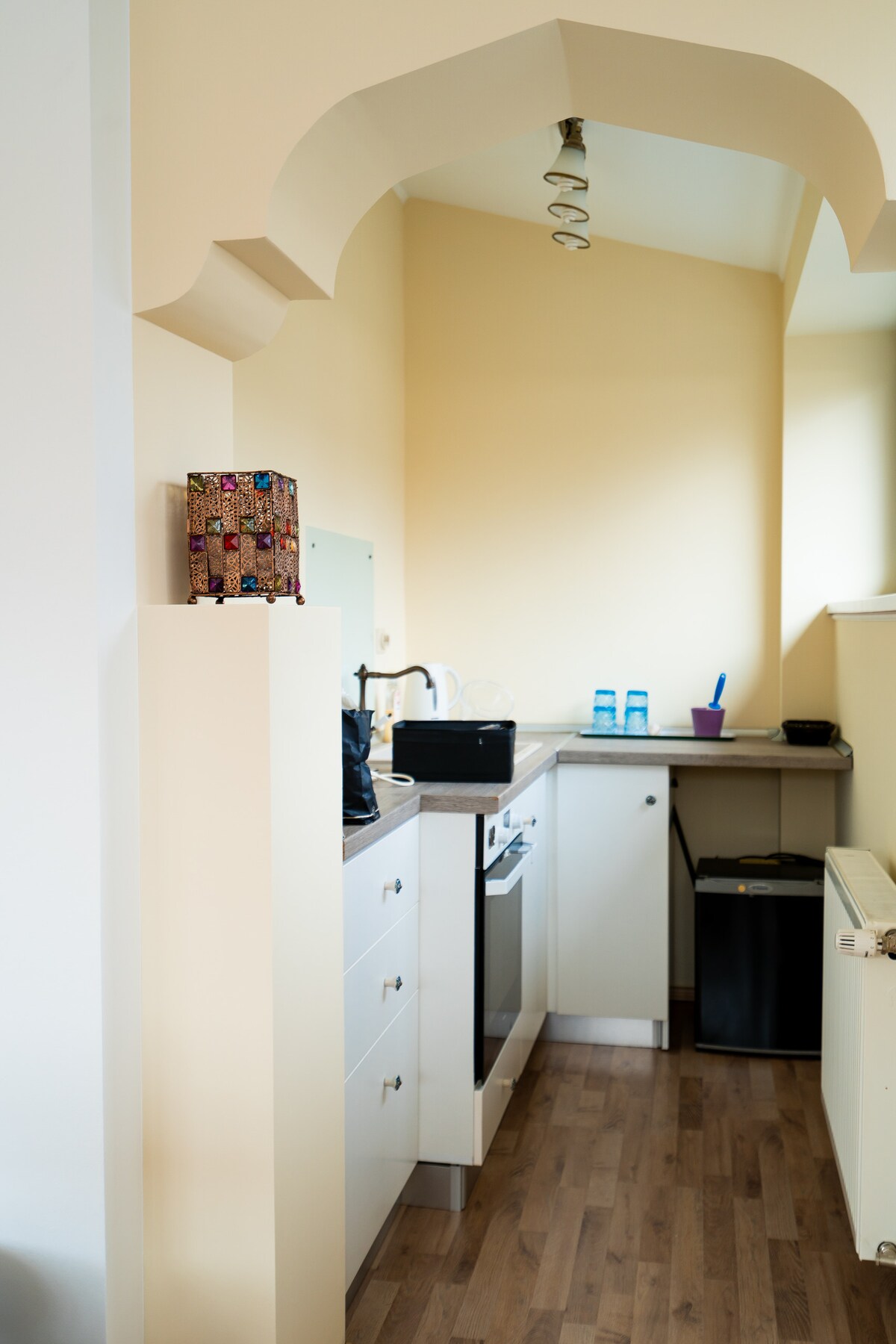 Busques un estudi fresc, còmode i molt dissenyat a Bucarest? Situat en un edifici històric en un dels bulevards principals de Bucarest, "Now You See Me" és la opció perfecta per a qualsevol viatge. Elegant però extremadament còmode, és un oasi per retirar-se dels concorreguts carrers de la capital, ja que és una destinació en si mateixa. Tant si estàs buscant una escapada romàntica, un lloc per treballar a distància o si només estàs aquí per gaudir de la vida nocturna, "Now You See Me" és el teu allotjament.