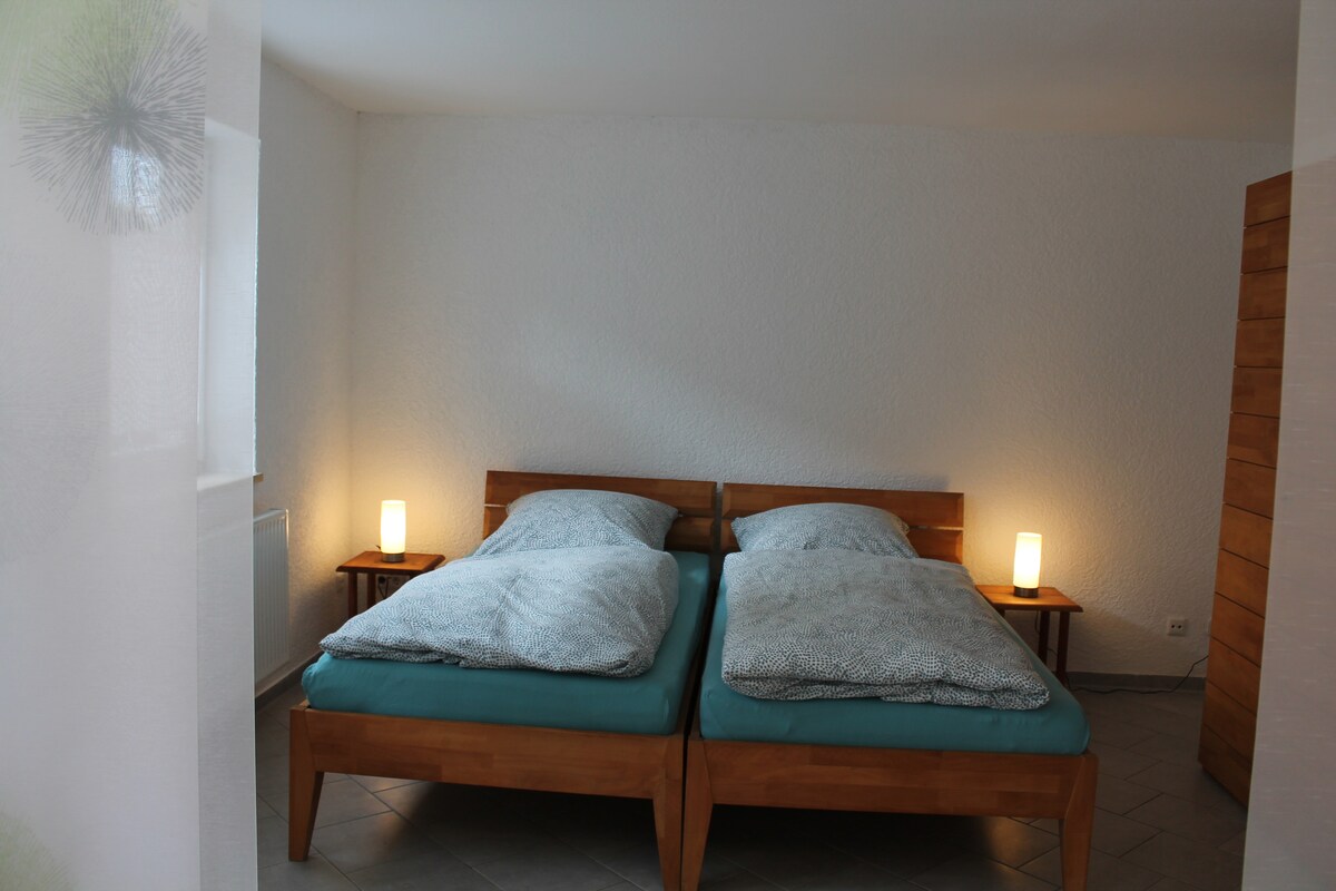 El «Little Stable» representa la desaceleració, la sostenibilitat i la vida real del poble. El nostre apartament, renovat amb molt d'amor, combina l'encant històric amb el confort modern, i està construït de manera ecològica. Per a un màxim de 6 persones, ideal per a famílies i amics. Amb sauna privada, banyera d'hidromassatge, cinema a casa i accés al graner de jocs. Restaurant i botiga de la granja a les immedaites proximitats i a pocs minuts del centre de Kitzingen. Arribeu, respireu i gaudiu del temps junts.