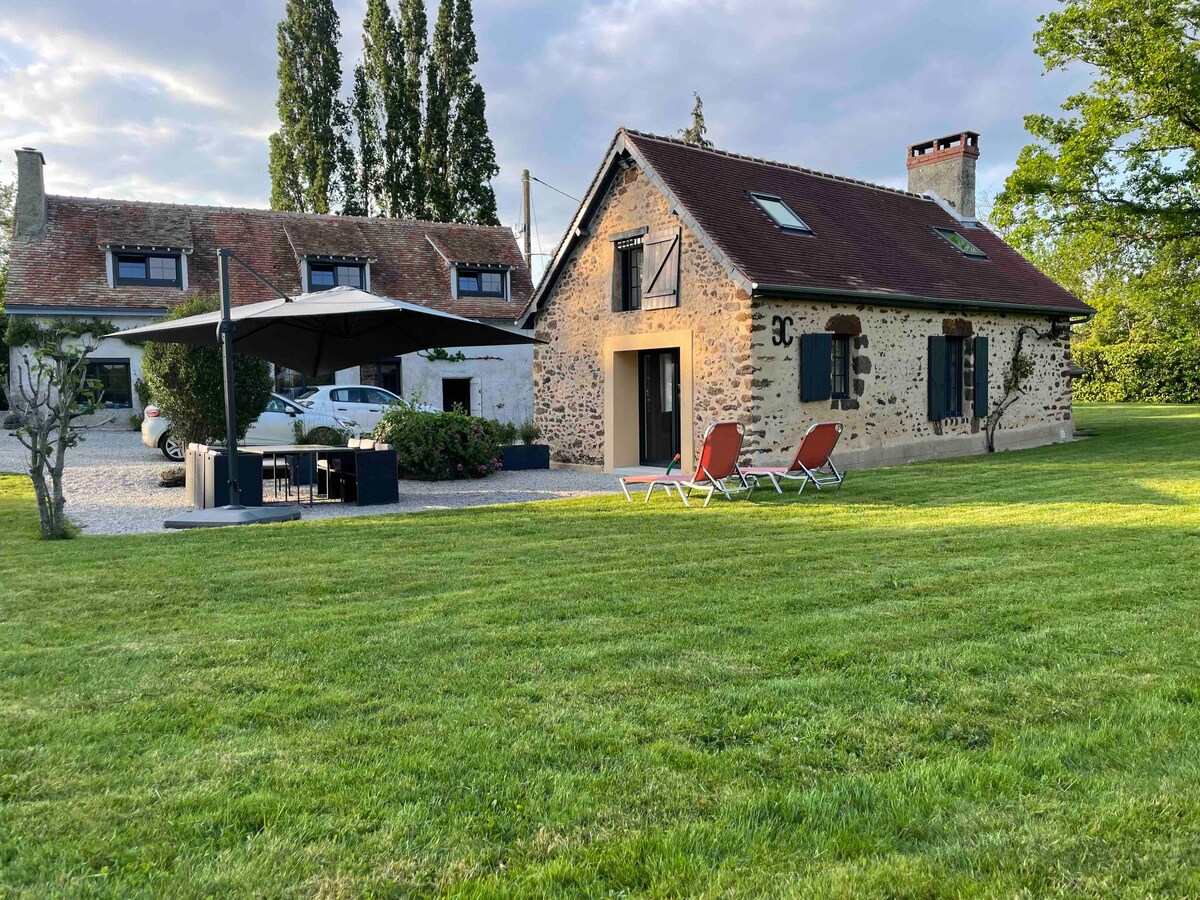 Oferim un allotjament en un antic establiment recentment restaurat, tranquil i agradable. Tindràs una sala d'estar (sofà, televisor, microones, nevera, bullidor, cafetera Senseo), un bany (dutxa, pica, vàter) i un dormitori en entresol (un llit de 160 x 200 i un llit de 90 x 190). No hi ha cuina. Pots gaudir del nostre agradable jardí. Aquest allotjament es troba a prop de la nostra casa. Es troba a menys de 40 minuts del circuit de 24 HORES.