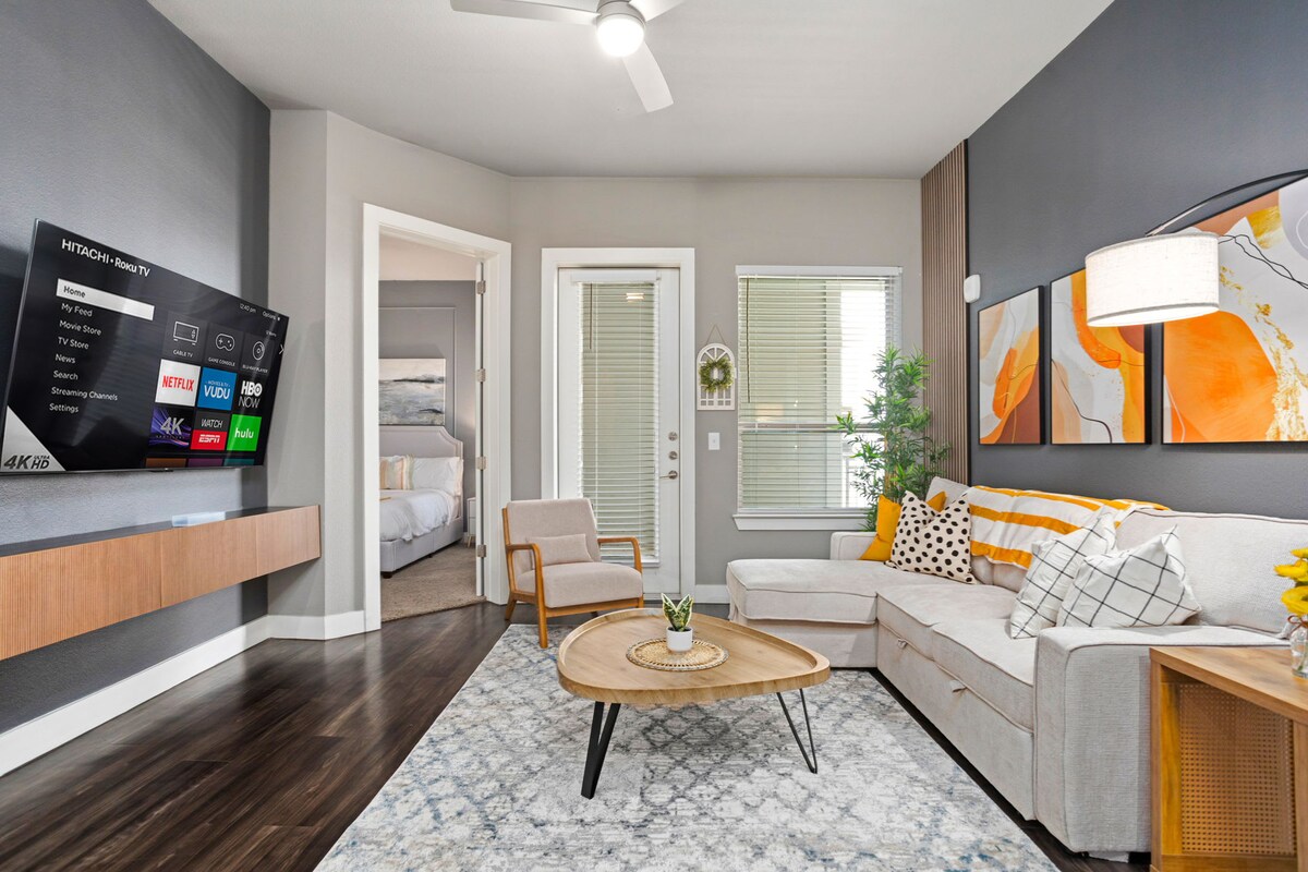 Gaudeix d'un refugi tranquil i modern en aquest acollidor allotjament de nova construcció amb equipament de gimnàs intern, una cuina totalment equipada, una àmplia sala d'estar amb un televisor de 55 polzades i dos dormitoris còmodes. Perfecte per a grups petits o famílies, l'allotjament ofereix wifi ràpid, aparcament privat i un pati tancat. Situat en un carrer tranquil d'un barri en creixement, és un lloc ideal per visitar Austin, San Marcos, les botigues locals i les atraccions de Hill Country.