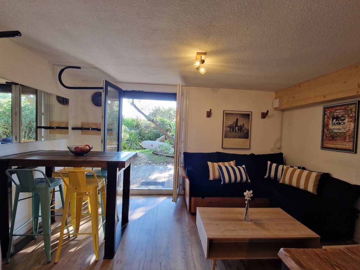 Completament reformat, aquest allotjament tan funcional de 30 m2 amb terrassa coberta és un capullet acollidor per a una estada agradable per a parelles, famílies o grups d'amics. Quan arribis, deixa el cotxe a descansar a l'aparcament segur de la residència. La proximitat a la platja (lloc de surf de Santocha, Prévent i Piste ), el port , carrils bici, restaurants i botigues milloraran la teva estada amb boniques passejades. S'ofereixen llençols i tovalloles wifi de forma gratuïta.