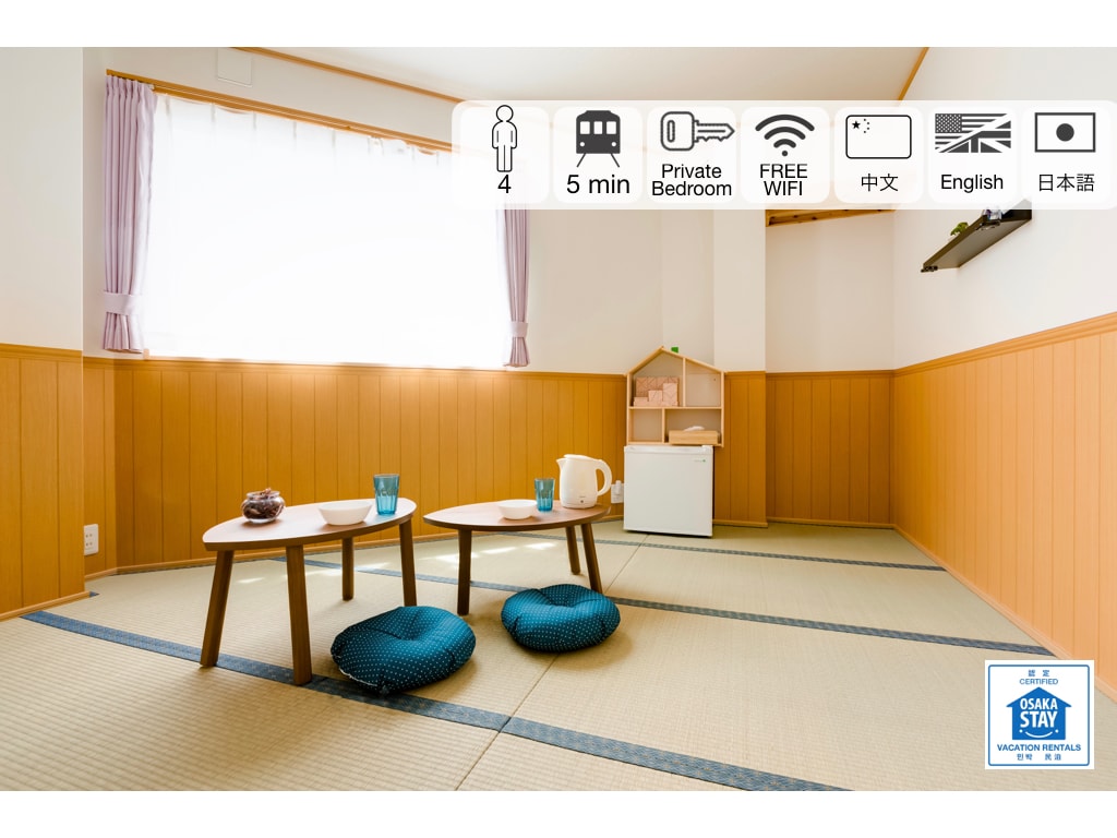 A 5 minuts de l'aeroport de Kansai / 9 minuts a peu de l'estació de Rinku Town / fins a 8 persones / Wi-Fi