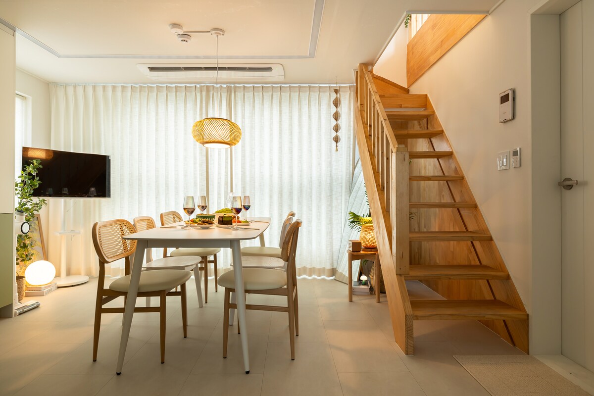 [Jin House] Estació d'Achasan, aparcament disponible, 2 habitacions amb llits, parc infantil, roba de llit de gust d'hotel, Hospital Asan de Seül
