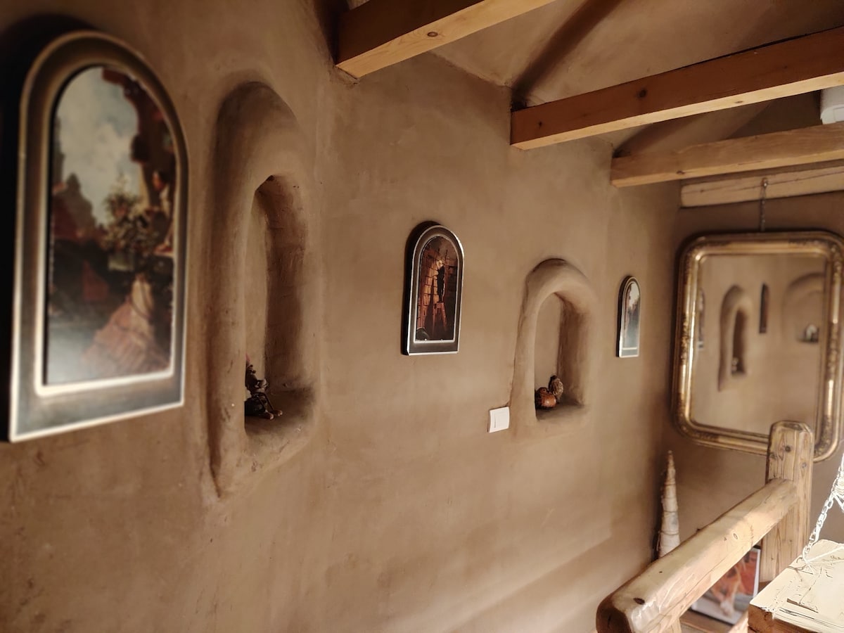 This attic is more than a place to sleep – it is a handmade space created slowly, using wood, clay and straw. A wooden staircase leads into a bright hallway with soft, earthy textures and handmade niches. The natural bathroom features a handcrafted wooden bathtub and wooden lavabo. We live in the same house, and this is a homestay, not a hotel. Calm, respectful guests who value simplicity and nature will feel at home here.