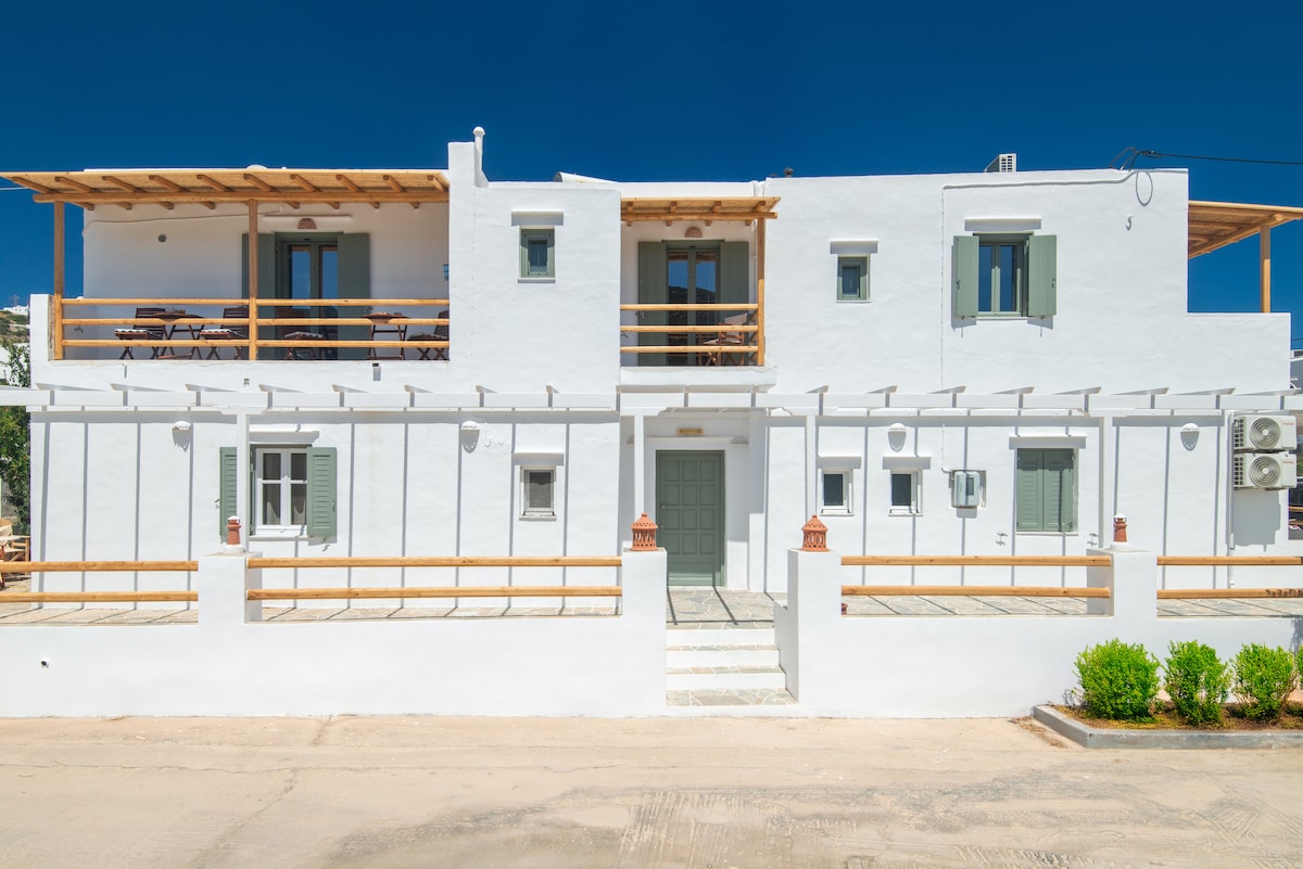 Els nostres apartaments són un complex d'allotjaments tradicionals totalment moblats, construïts amb amor i respecte per l'arquitectura de les Cíclades i les tradicions locals. Tots els estudis disposen de balcons privats on es pot gaudir de vistes al mar Egeu i als pobles dels voltants. La nostra càlida hospitalitat, juntament amb les nostres delícies casolanes, faran que la teva estada sigui realment meravellosa.