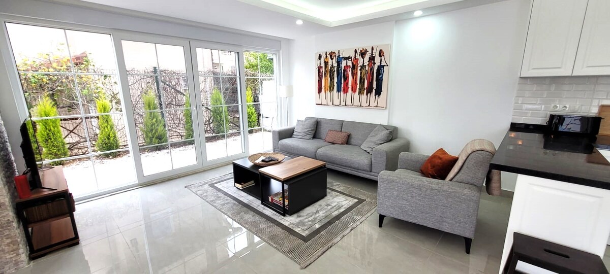 Aquest és el nostre pis d'1 dormitori que té les vistes al mar més boniques de la sala d'estar i al dormitori. Oferim internet d'alta velocitat. A la sala d'estar hi ha un sofà i també podria haver-hi llit. -Vera Suites està a 2 minuts de la platja de Konyaaltı i a prop de totes les cafeteries i restaurants. - Podem afegir un llit addicional si cal . - Proporcionem una neteja setmanal gratuïta per a una reserva de més de 5 dies. - Disposem d'una recepció i un servei de seguretat les 24 hores. Pots posar-te en contacte amb nosaltres en qualsevol moment per a totes les sol·licituds.