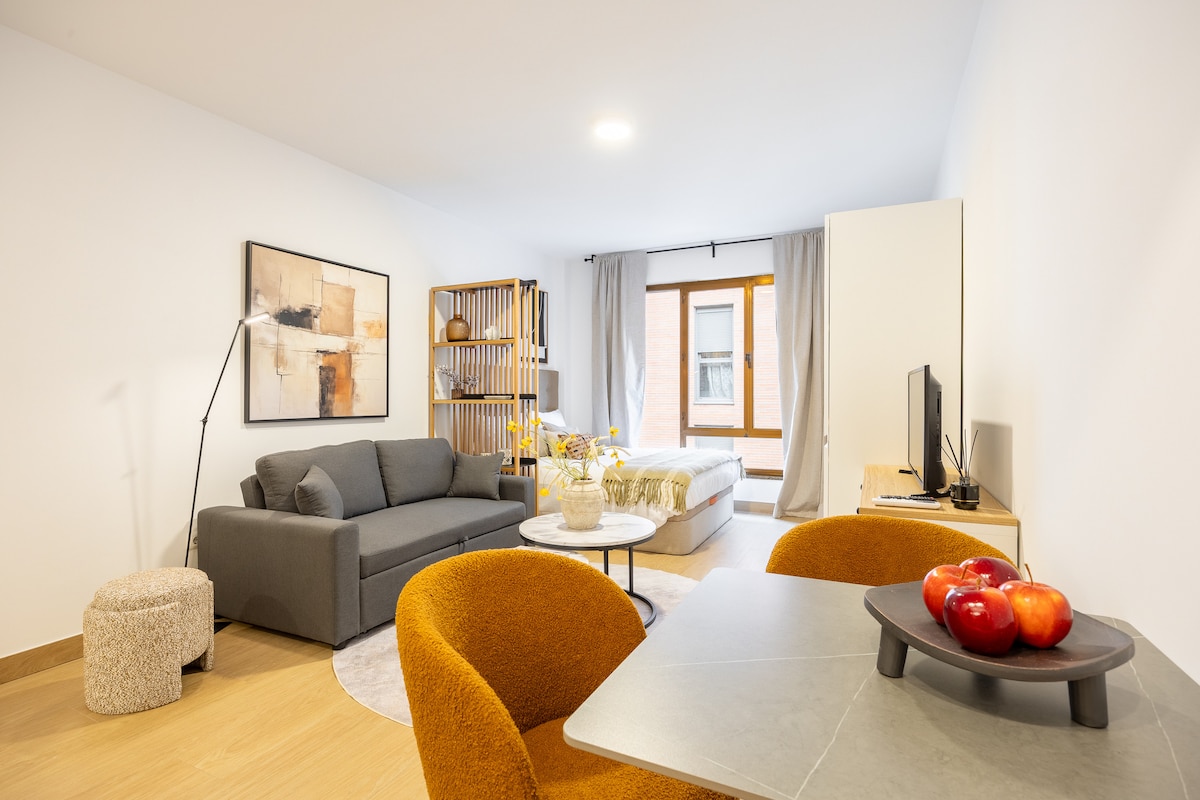 Estudi còmode i avantguardat recentment reformat. Disseny modern en un barri tranquil. Tot el que necessites als voltants, supermercats, línia d'autobús i metro proper. * Llit gran de 150 x 190 * Bomba de calor i fred d'alta qualitat * Bany complet amb dutxa * WIFI, televisió * Aire modern i recentment reformat * Opció d'aparcament disponible (és necessari sol·licitar-ho)