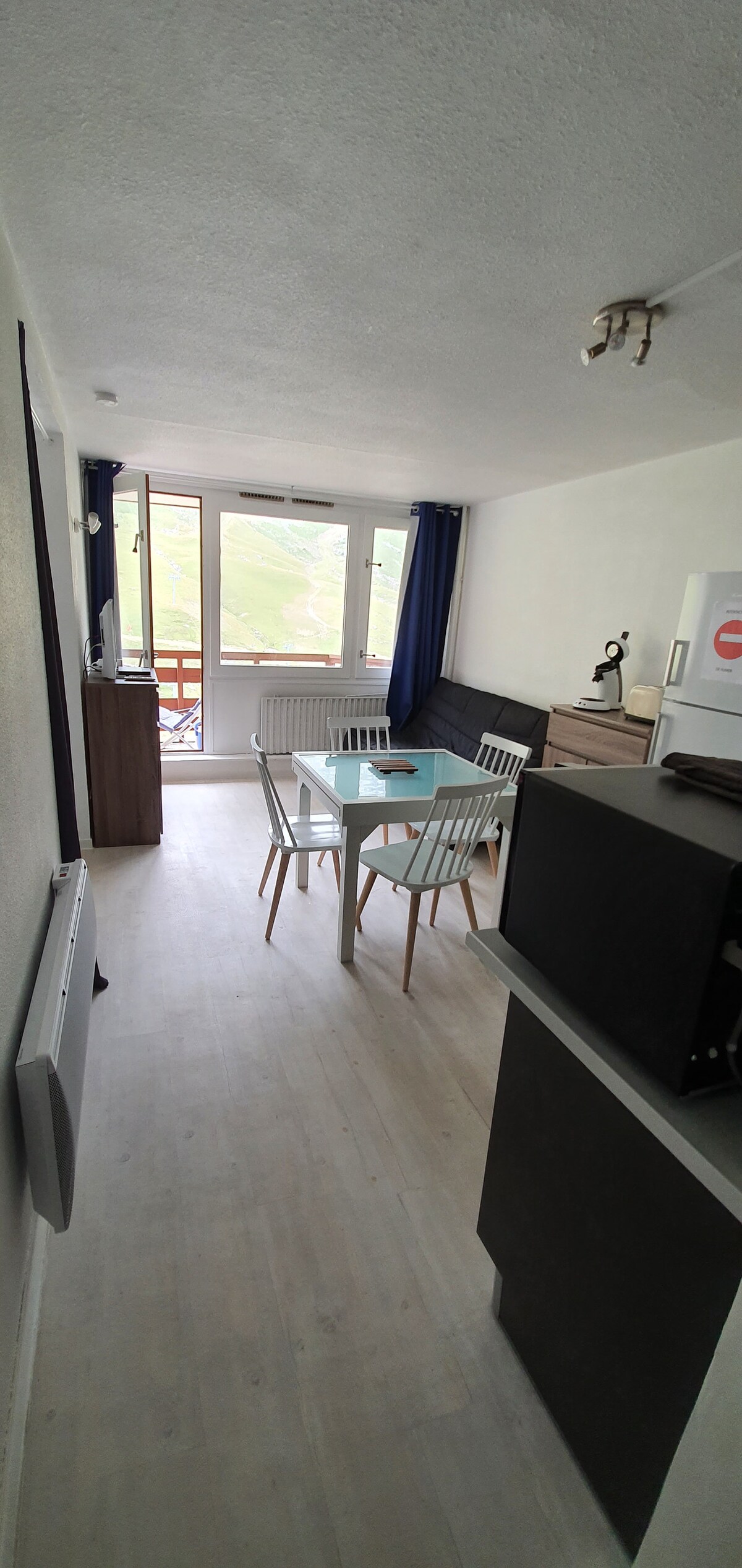 Agradable i funcional estudi de 21 m2, reformat, orientat al sud, situat al quart pis d'una residència tranquil·la amb ascensor. Aparcament privat cobert + taquilla d'esquí + emmagatzematge segur per a bicicletes. Ideal per a 2 persones. Sense wifi ni despeses de neteja, has de fer-ho a la teva sortida. Paquets de cura. La parada de Skibus davant de la residència et porta de forma gratuïta fins als peus de les pistes (telecadira Barèges/La Mongie). Rotació durant tot el dia, veuràs 3 últimes fotos.