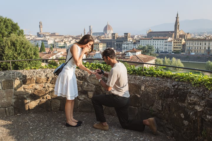 Reportatge fotogràfic de la teva proposta de matrimoni a Florència, un dels llocs més romàntics per prometre's. T'ajudaré a triar el lloc més adequat de la ciutat segons les teves necessitats i organitzaré la sorpresa. La sessió de fotos professional inclou la lliurament de 45 imatges d'alta resolució retocades.