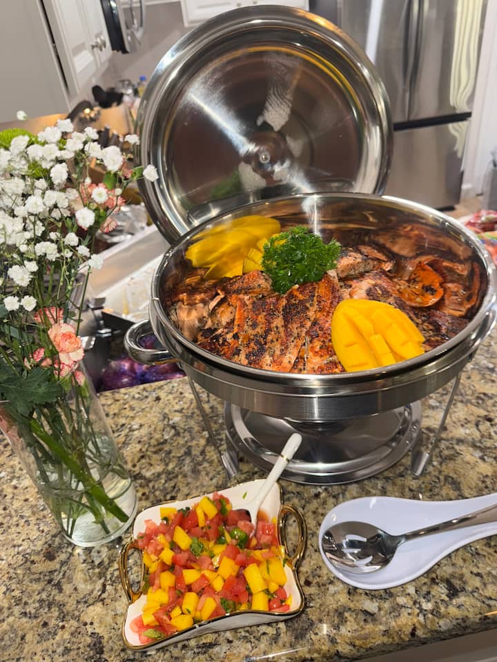 Gaudeix d'un sopar caribeny de primera amb salmó a l'estil jerk, cua de bou estofada, gambes al curri i molt més. Inclou la preparació, el servei i la neteja. Opció d'autoservei amb articles d'un sol ús disponibles; els preus s'ajusten en conseqüència. Hi ha cambrers disponibles per un suplement. Mínim 5 hostes.