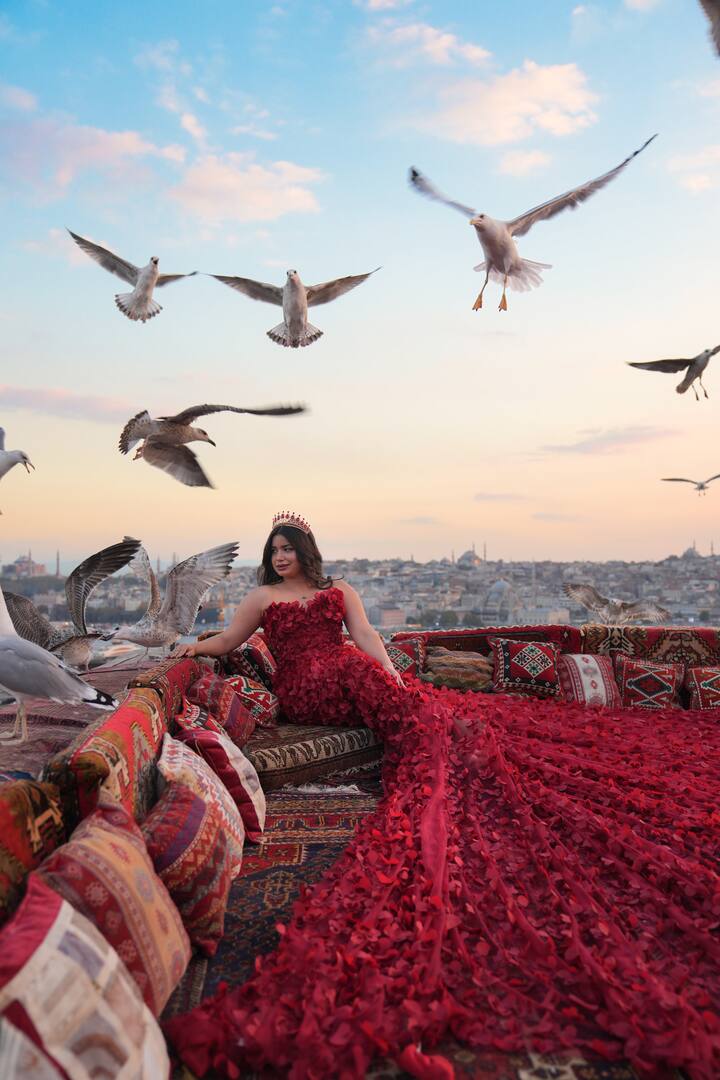 Amb 11 anys d’experiència, m’especialitzo en sessions de fotos amb vestits voladors al millor estudi d’Istanbul, i creo records elegants i atemporals per a viatgers d’arreu del món.