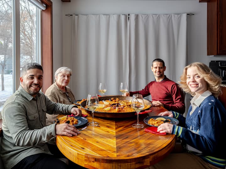 En Roberto, un espanyol que viu a Minnesota, porta tot l'equipament a la teva ubicació per cuinar una deliciosa paella, marisc, pollastre o menjar vegetarià, elaborat a l'autèntica manera espanyola.