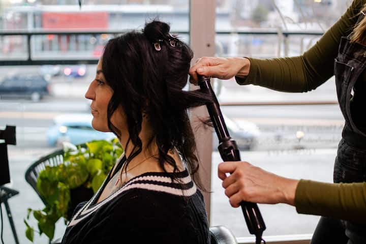A partir de cabells nets i secs, fer servir planxa per arrissar els cabells, rul·los calents o planxa per alisador (sense assecador), sense pinces ni trenes incloses