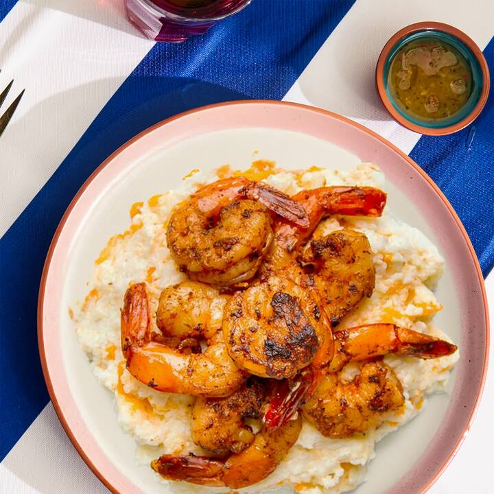 Gaudeix del clàssic de la casa del xef Chris Ratel, amb gambes rostides i negres, condimentades amb all i espècies cajun. Se serveixen sobre una base de sèmola espessa i cremosa, amb blat de moro acabat de ratllar i una mica de formatge Pepper Jack. Inclou 1 àpat per hoste.