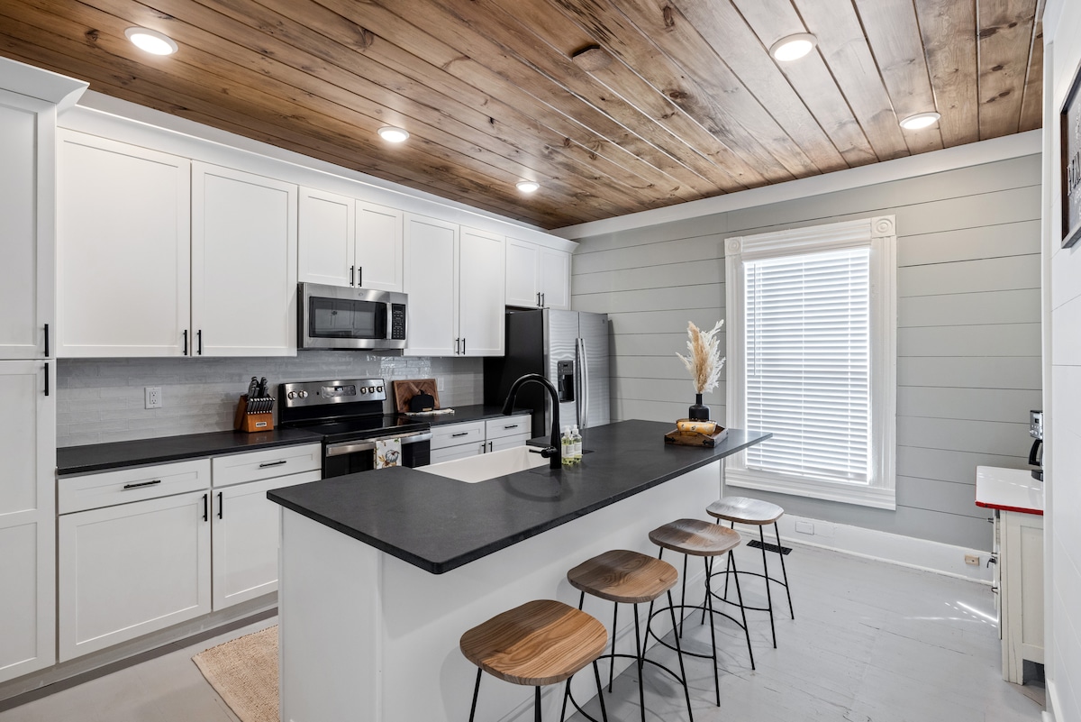 Flanquejada per un vell bosc de fusta i una carretera aïllada en corba, The Treehouse és una pintoresca i encantadora estructura en forma d'A renovada el 2022. Un oasi enmig de totes les destinacions de vacances populars, és a prop del centre de Knoxville i de tots els restaurants, botigues i atraccions de la ciutat. Les precioses portes d'entrada de vitralls, els sostres abovedats, els clarabois i les finestres expansives són benvingudes a la propietat privada i boscosa. Dos dormitoris, banys nous, terrasses i mobles elegants et faran les delícies.