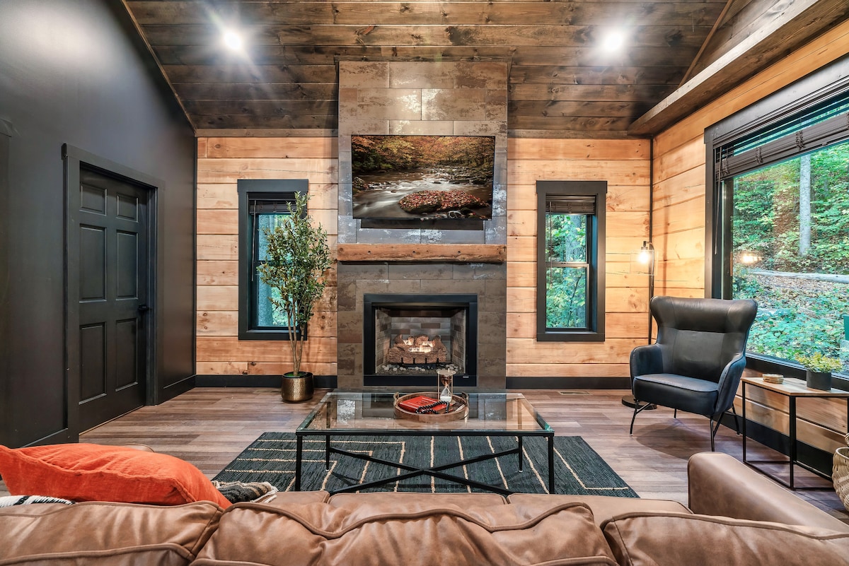 Welcome to 🦌 Scandi House 🦌 Unwind in the beautiful Smoky Mountains while enjoying the modern design, privacy, and the amenities of this Scandinavian inspired cabin. This cabin was newly built in 2024 and has been updated in December 2025. We completed a deck extension with outdoor theater, bocce/bowling, firepits, seating, and games. Inside we upgraded the design, added a 6 person dining table, new furniture, bunk game area, and main bedroom king bed, second coffee bar, and reading nook.