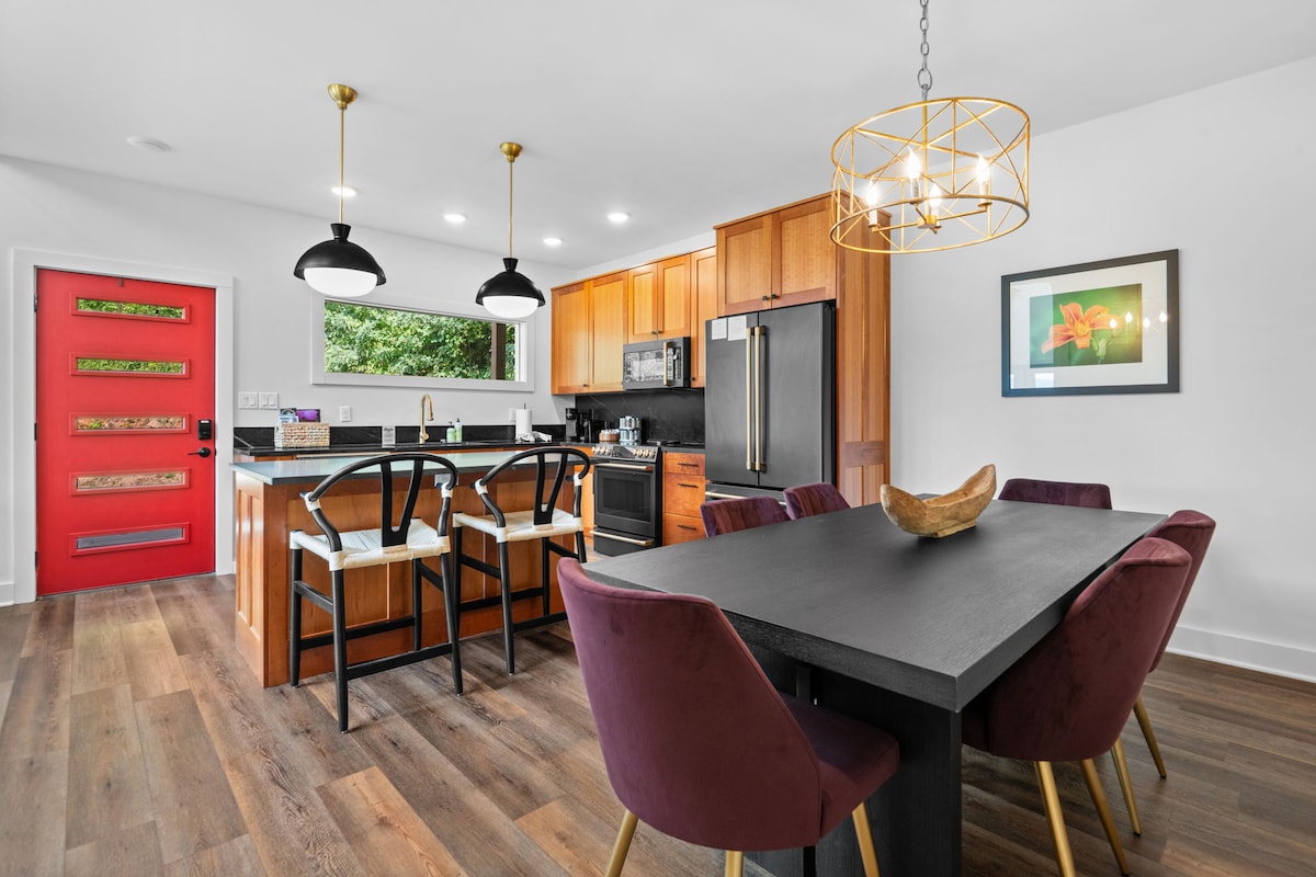 Escape to this eco-friendly A-Frame retreat, just minutes to GSMNP! Enjoy included activities like hiking, pedal boating, kayaking, and fishing on a private 2-acre stocked lake. Relax with EV charging, a cozy fire pit, charcoal grill, fully equipped kitchen, and in-unit washer/dryer. Plus, a kid’s play area, fishing docks, trails, and firewood are yours during your stay. 1.5 miles to Soaky Mountain Water Park. Sleeps up to 4 guests—no pets, please! Extra guests need approval and a small fee.