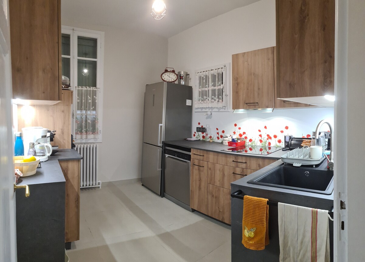 Relaxa't en aquest espai tranquil i elegant. Moblat amb mobles de qualitat, zona residencial a 5 minuts a peu del llac Annecy, un carril bici al llarg del llac en paral·lel, barri tranquil i agradable, restaurants, supermercats i algunes botigues properes, transport públic.