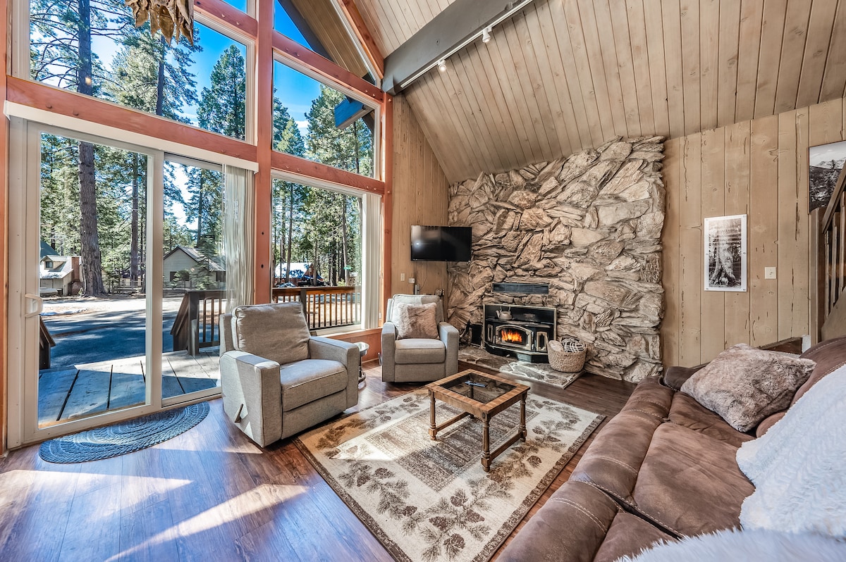 🏔️ A només 5 minuts a peu dels bars, restaurants i diversió del centre de Shaver Lake! Aquesta caseta, que s'ha renovat completament el 2025, combina comoditat i estil amb unes finestres impressionants que donen al bosc! ⭐️ Gaudeix de televisió de pagament GRATIS amb la nostra Black Box: UFC, boxa, pel·lícules i molt més! Tots els electrodomèstics són nous i hi ha un pany 🔐 intel·ligent per fer l'arribada autònoma sense complicacions. ❄️ Aire condicionat/calefacció a totes les habitacions, a més de xemeneies acollidores a tot l'allotjament. La teva escapada perfecta a la muntanya comença aquí: el luxe modern es troba amb l'encant elegant. Fes la reserva ara i relaxa't!