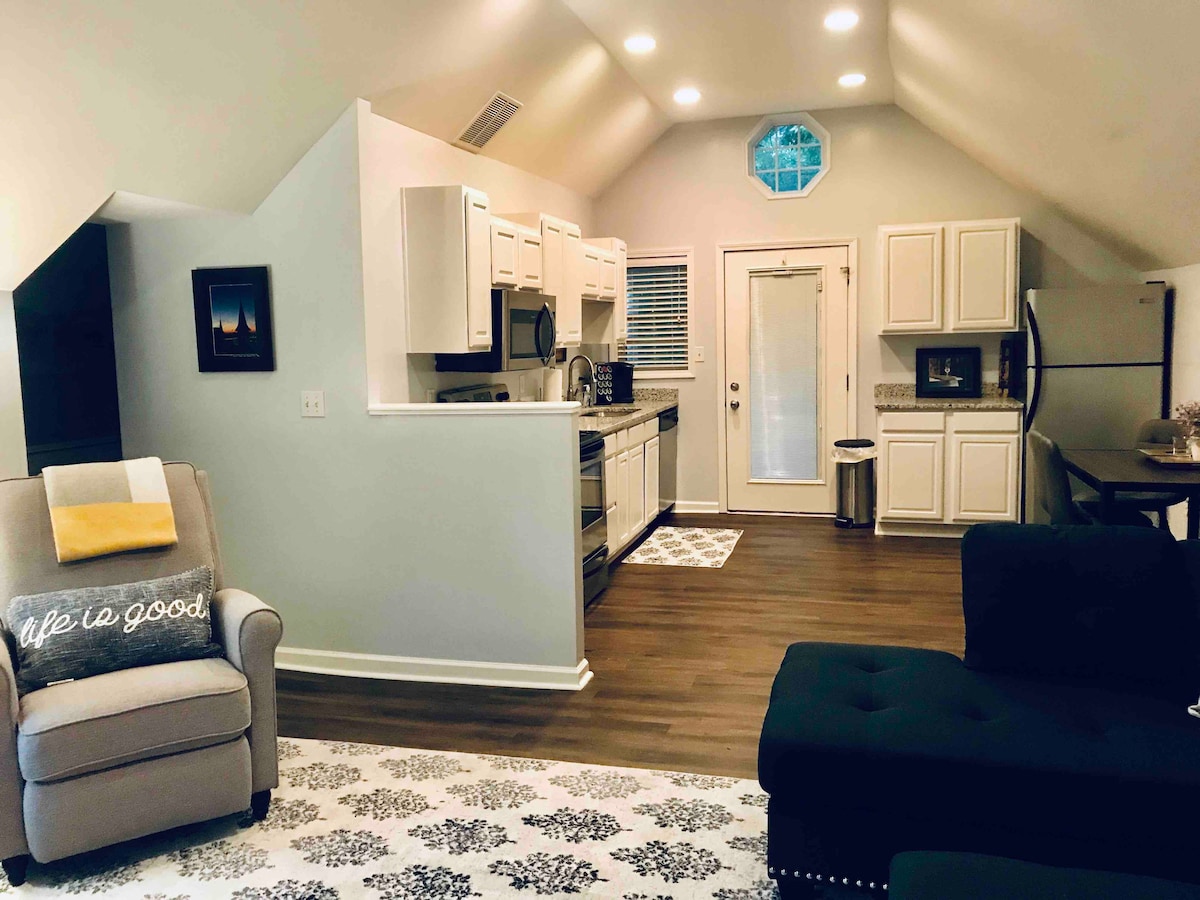 Vine a relaxar-te a la tranquil·la casa del riu. Sembla un refugi al riu Kentucky amb un moll de mida de festa per accedir fàcilment al riu. És una acollidora casa rural amb una barra d'esmorzar al porxo i un gronxador al pati. Envolta't de natura i unes vistes precioses del riu i dels palaus. Amaga't en un lloc aïllat a pocs minuts del centre de Wilmore, la Universitat d'Asbury i el Seminari. A 35 minuts o menys de l'aeroport LEX Bluegrass, Keeneland i Shaker Village. Si vols més informació, consulta la guia.