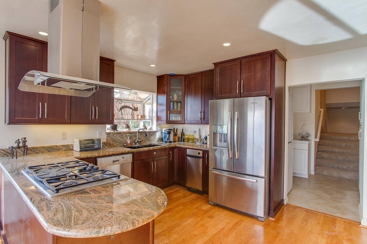 Welcome to our modern 6-bed 4.5-bath house in San Diego. Ideal for families or groups, this luxurious retreat offers sleek design, spacious living areas, and 2 fully equipped kitchens! Each bedroom is tastefully furnished for ultimate comfort! Relax on the 3 patios, grill your favorite meals, and enjoy the sunny California weather! With easy access to San Diego Zoo, and stunning beaches, this stylish home is the perfect base for your unforgettable stay!