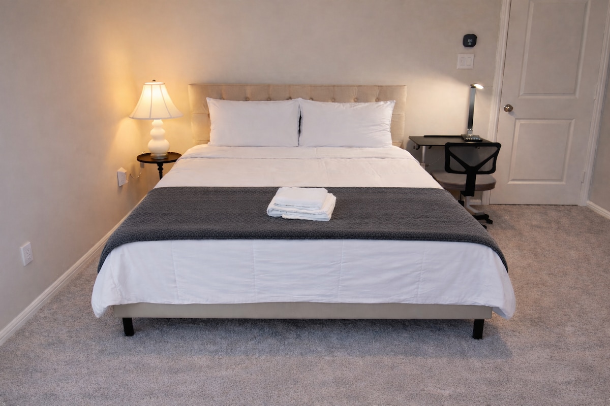 Un allotjament tranquil de nova construcció a Denison, Texas. Ampli jardí tancat! A minuts del llac Texoma, del centre de Denison i del casino Choctaw! 2 dormitoris, el dormitori principal té un llit infantil amb bany privat, el dormitori de convidats té un llit de matrimoni i un bany just a fora. Cuina espaiosa amb electrodomèstics nous i tot el bàsic que necessites! Acollidora sala d'estar lluminosa, televisor intel·ligent per a streaming i wifi d'alta velocitat. Espai per fer-hi una foguera amb molt d'espai per passar-hi l'estona. Hi ha un carregador de vehicles elèctrics Tesla a l'allotjament