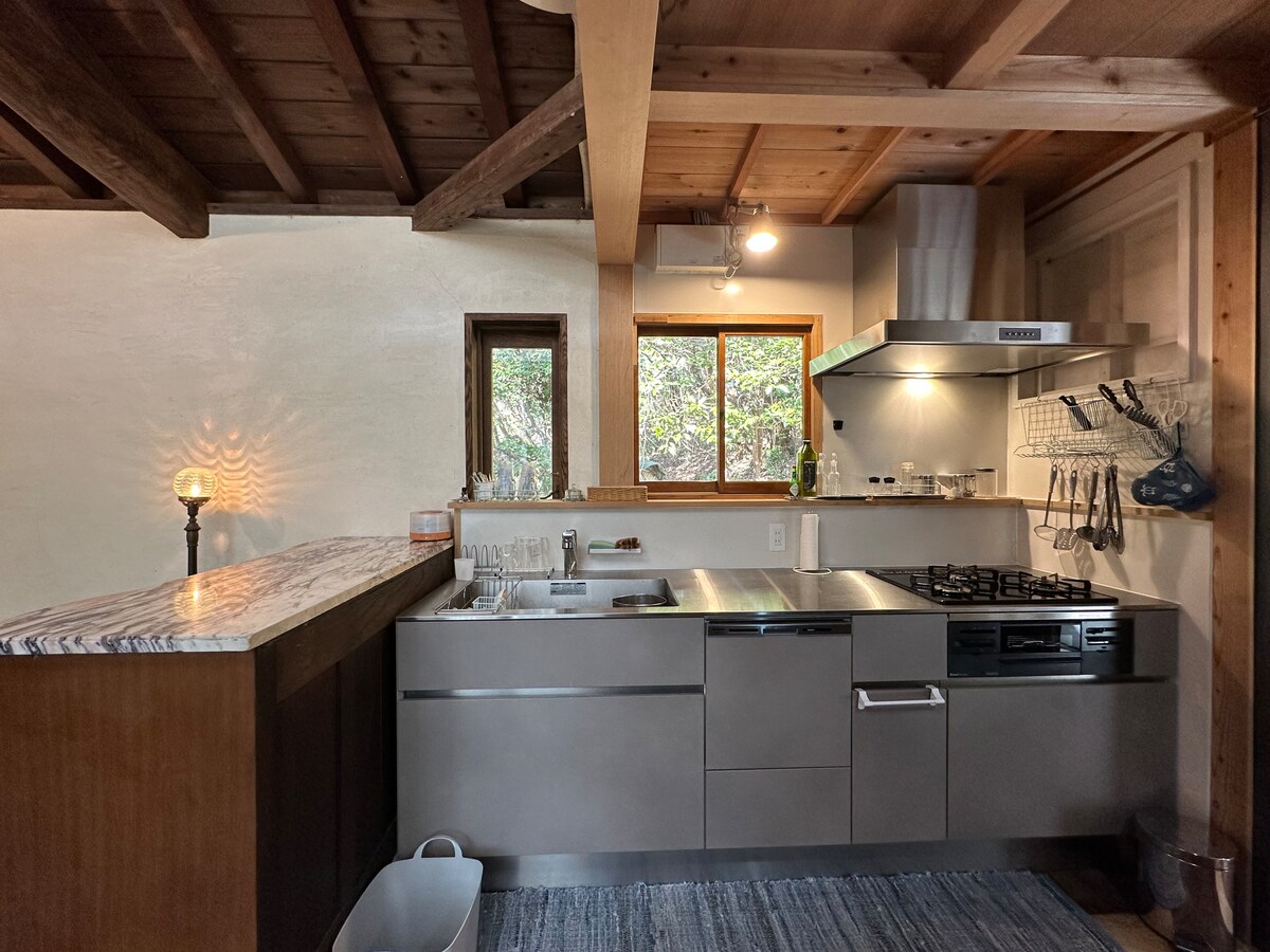 Gaudeix dels extraordinaris sons de la natura en una casa rural amb vista al mar. Hi ha una casa rural al parc nacional de Tanushi, que passa pel punt d'energia Heart Cave Ryugu (model per a "Ponyo" de Ghibli), i la platja de Tanushi. Quan entres per la porta principal de la casa rural, el verd dels arbres i la llum brillant de l'oceà salta als ulls.La sala d'estar de 20 tatamis amb sostres alts té un sofà, cuina, altell i una llar de foc a l'hivern, i és un espai relaxant per a famílies i amics. Quan surtis de la finestra a la terrassa, pots veure el cel i el mar que s'estenen des del mar.Pots sentir la brisa i el cel que flueixen lentament a la banyera d'hidromassatge i a l'hamaque. Des de la terrassa, puja una altra escala fins a la coberta.Només hi ha natura fins on arriba la vista.El paisatge impressionant s'estén. El flux relaxat del mar i els vaixells de pesca a Izu, es pot sentir el so dels ocells al rierol.És una gran desintoxicació. Després, baixa un pis per gaudir d'una barbacoa de carbó mentre escoltes el murmuri del riu al bosc.Va ser deliciós, divertit i un gran record. A la nit, el cel estrellat és impressionant i, si el temps és bo, pots veure estrelles fugaces!Pots gaudir de la bellesa del cel.