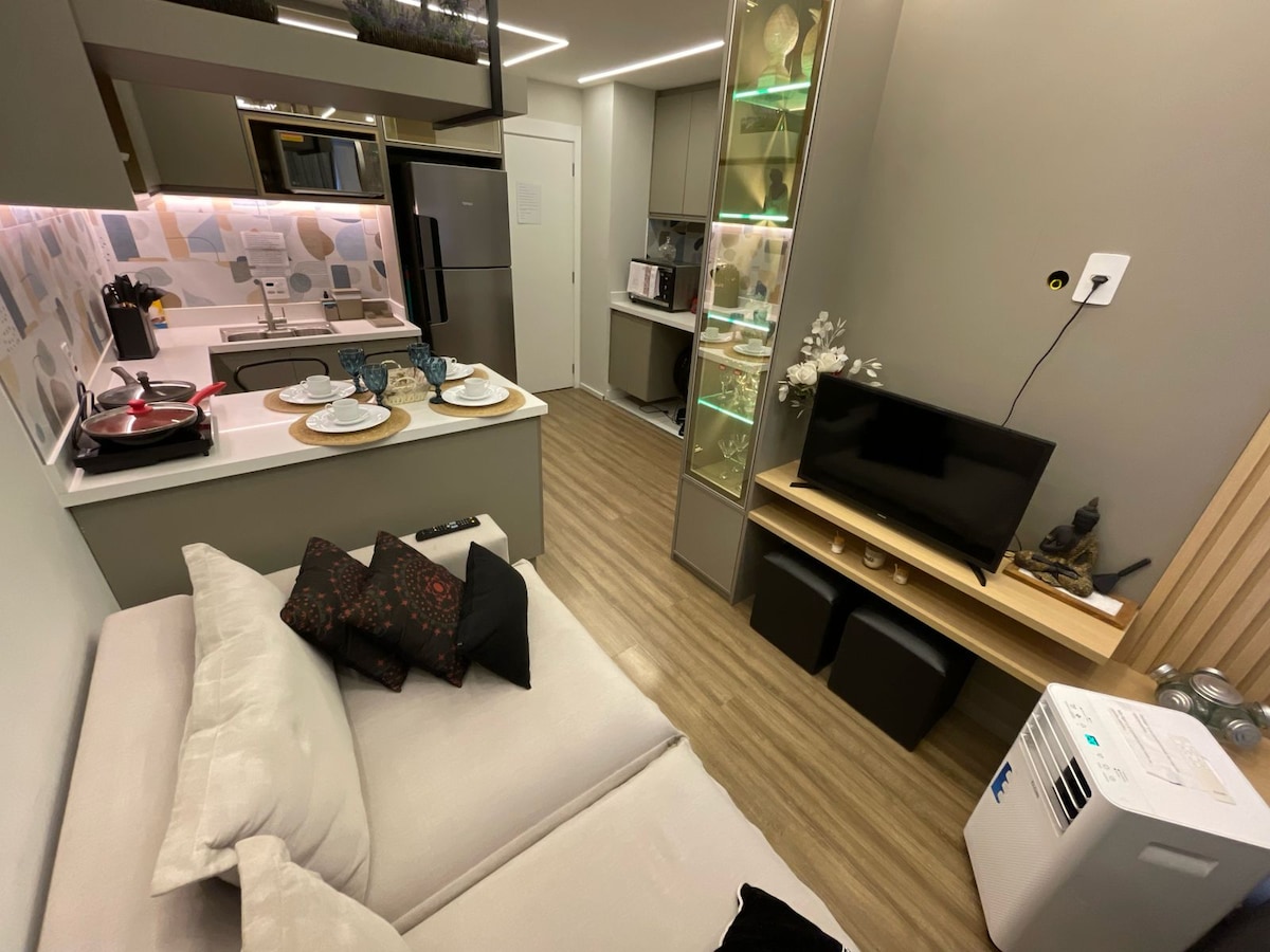 Et donem la benvinguda a la teva llar lluny de casa! Aquest encantador estudi de 23 m està dissenyat per ser el teu refugi enmig de l'enrenou de São Paulo. Tots els detalls han estat dissenyats per oferir una experiència acollidora i completa. I el millor: estaràs a Tatuapé, un barri ple de vida i amb una varietat increïble de bars, restaurants i botigues. Relaxa't a la piscina després d'un dia de visites turístiques o comença el matí amb energia al gimnàs. L'estudi perfecte per a una estada inoblidable.