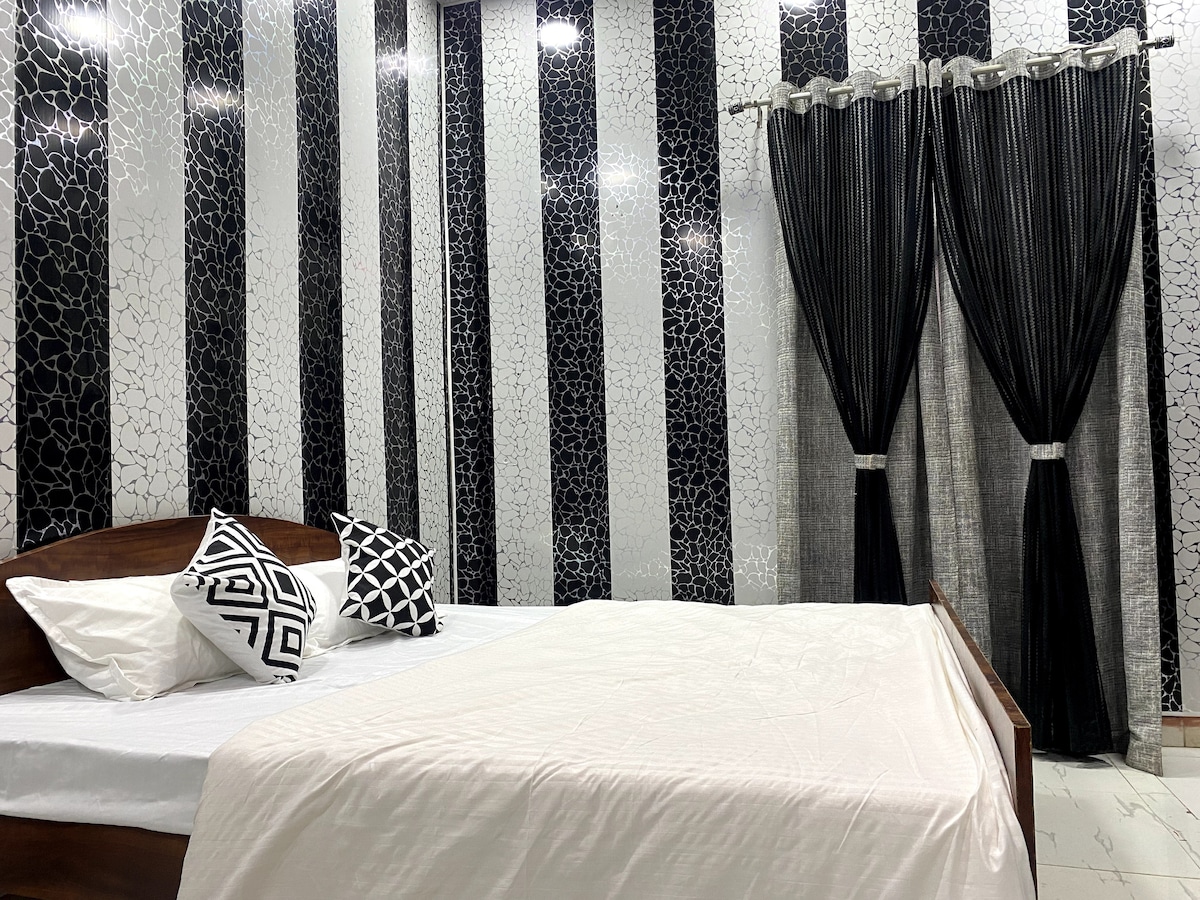 This stylish place to stay is perfect for groups, families & solo trips. We offer a new property having a parking , restaurant, 24/7 centralized hot water, Smart T.V. , wardrobe, a 6ft*6ft king size bed with 8 inch spring mattress, lift & much more. The property is wheel chair accessible and located in a very prime locality.