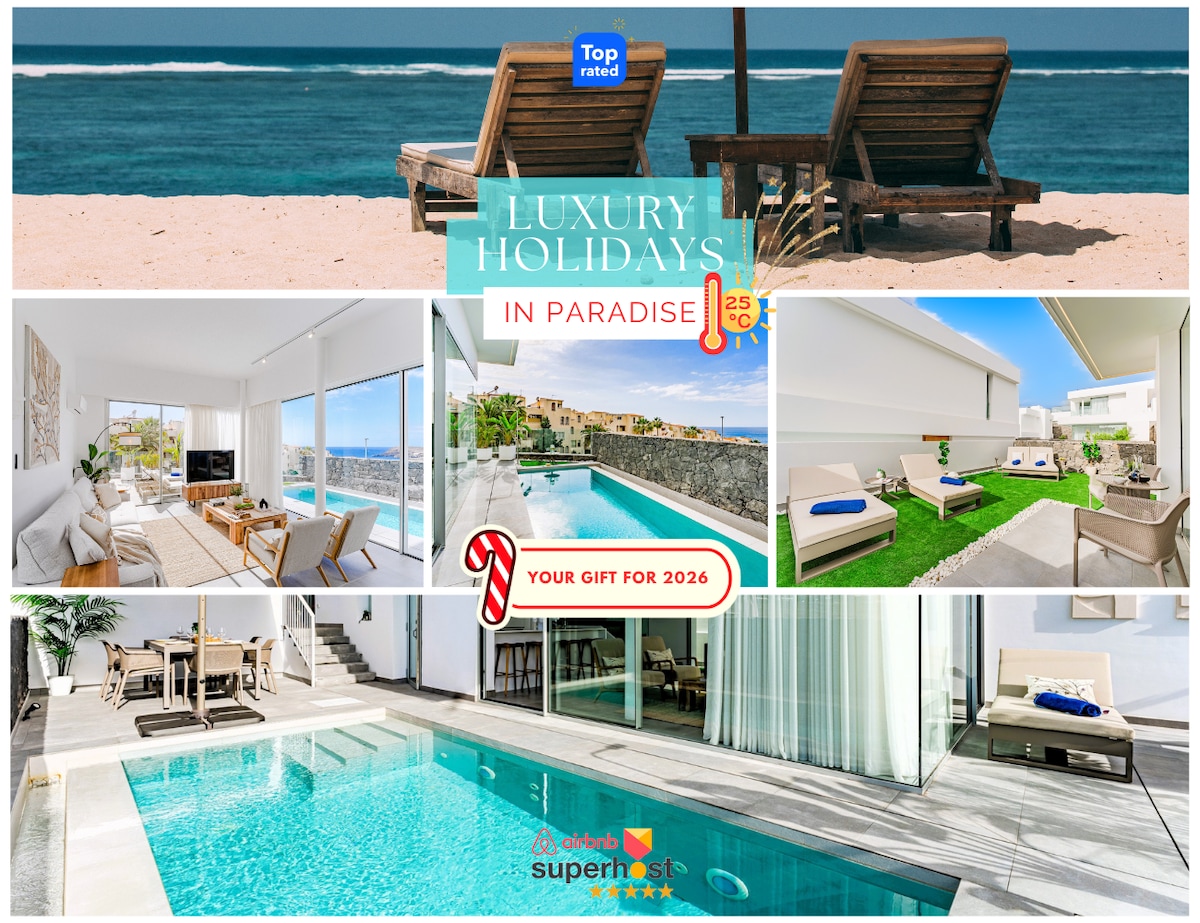 Business Class One: Vil·la a la platja amb piscina climatitzada