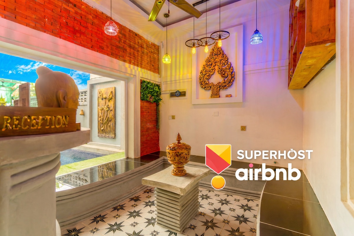 «Un allotjament espaiós i apte per a famílies, ideal per gaudir d'una estada còmoda a Siem Reap. Situat en un barri tranquil amb fàcil accés a botigues, supermercats i restaurants locals. Els hostes poden relaxar-se en un entorn privat i tranquil amb molt d'espai, gaudir de la piscina i sentir-se com a casa amb equipaments i serveis tant per a estades curtes com per a estades llargues.