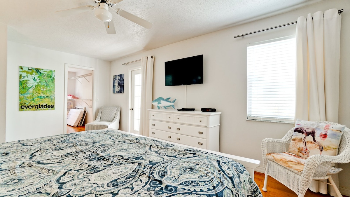 Luxe a la vora de l'aigua al cor de Siesta Key. Aquest allotjament amb 3 habitacions i 2 banys ofereix una combinació poc habitual de serenitat davant del canal i comoditat per anar a peu a la platja. Gaudeix d'un moll privat amb accés directe al golf, caiacs que pots deixar al pati del darrere, relaxa't al llum del sol i descansa amb vistes a l'aigua tranquil·la (podràs veure manatís!). A pocs minuts de la platja de Siesta Key, de restaurants i de botigues del poble: la vida a la costa de Florida. T'oferim bicicletes, caiacs, pals de golf i tot el que necessites per anar a la platja!