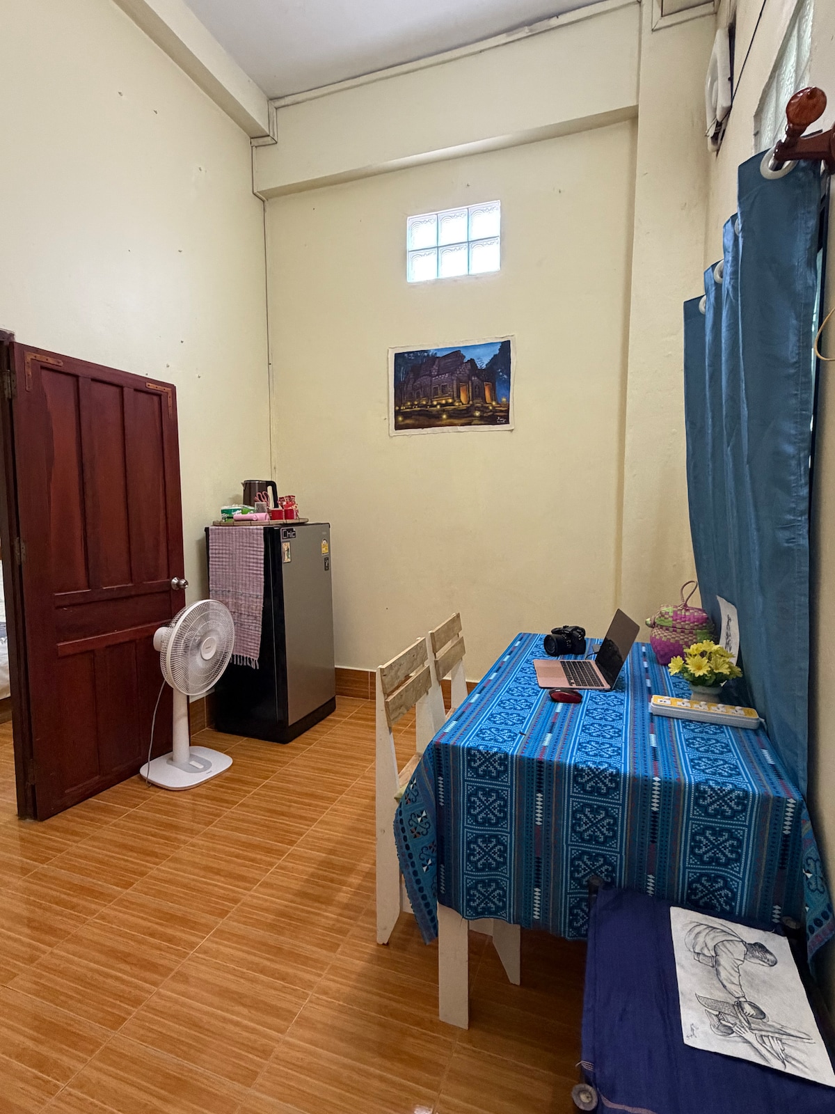 Un acollidor pis amb serveis totalment moblat situat al centre de la ciutat. A poca distància a peu de cafeteries, restaurants, mercat nocturn, pubs, etc. El servei diari de la casa es proporciona de dilluns a dissabte. Estem al mateix edifici que Kiriya Cafe, just davant del temple Inpeng. Aquest allotjament es troba a la 1a planta de l'edifici. Si us plau, informa'ns de la teva hora d'arribada i hi haurà algú que t'ajudarà amb l'equipatge.