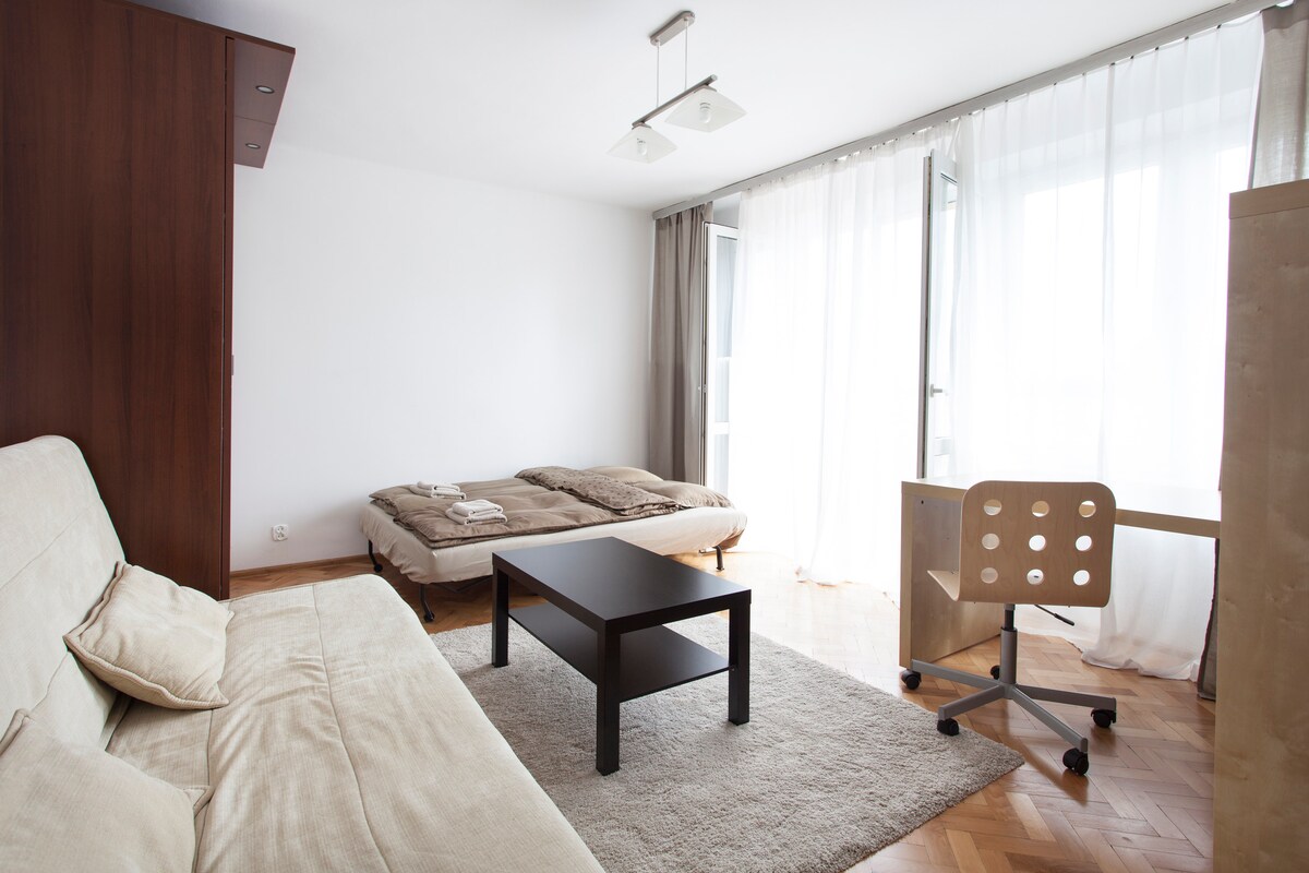 Estudi elegant amb balcó, situat al primer pis, al cor del famós barri jueu, Kazimierz, el centre de la vida cultural i d'oci de Cracòvia. La seva ubicació cèntrica ofereix un fàcil accés a atraccions turístiques com la plaça del mercat principal i el castell de Wawel. Estar situat al cor de Cracòvia garanteix un accés còmode a diversos restaurants, cafeteries i botigues. L'ambient vibrant del barri permet als hostes experimentar la cultura local de primera mà.