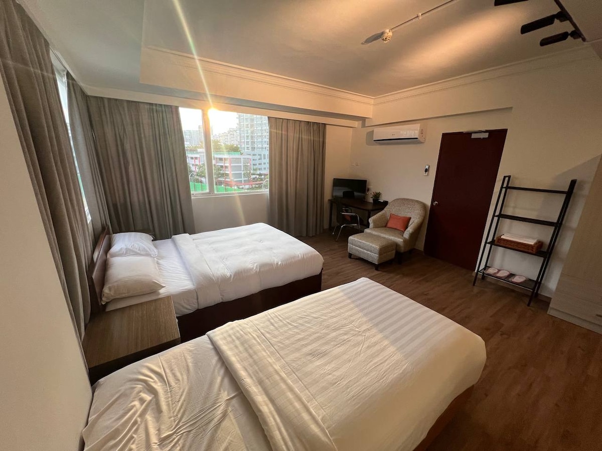 Els nostres apartaments estudi són ideals per a parelles, professionals o nòmades digitals que busquen una estada còmoda i sense problemes. Situat al barri vibrant i cèntric de Farrer Park, estem a poca distància del CBD, de les compres del centre i de llocs d'interès com Chinatown, Fort Canning i Gardens by the Bay. L'aeroport es troba a 25 minuts en cotxe. Estem a 7 minuts a peu de l'estació de MRT de Farrer Park, amb centres comercials, venedors, cafeteries i botigues de conveniència als voltants.