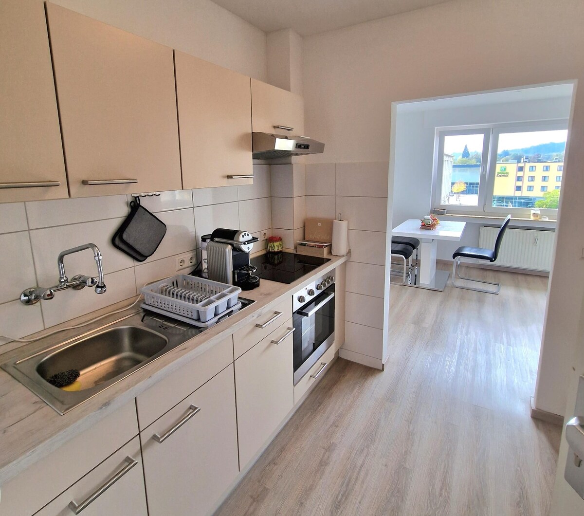 EL HEGAU BLEIBE - PUNTS DESTACATS ✔ Ideal per a famílies, grups o viatges de negocis ✔ 4 dormitoris, cadascun amb 2 llits amb somier (individuals o dobles) ✔ Cuina totalment equipada i taula de menjador gran ✔ Cafetera i barra de te totalment automàtiques ✔ Lluminós, espaiós, sensació d'obertura Disseny ✔ modern ✔ 2 places d'aparcament gratuïtes a la porta principal ✔ Ubicació cèntrica: el centre i la natura a poca distància a peu ✔ Bones connexions de transport ✔ Wi-Fi, rentadora, assecadora, estacions de treball ✔ Zona exterior privada i tancada