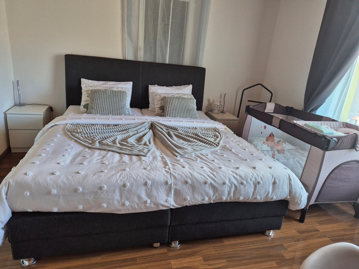 Aquest estudi es troba a 3 km de Sion, al poble de Bramois. La parada d'autobús està just davant de l'edifici. A la planta baixa d'un edifici nou, la cuina i el bany estan ben equipats i són moderns, hi ha dos llits individuals que es poden ajuntar (sofà llit Ikea 2/80/200), i un llit infantil a petició, TV, wifi, un jardí/terrassa que et permet gaudir del sol i la tranquil·litat, un aparcament subterrani privat manté el teu cotxe segur.