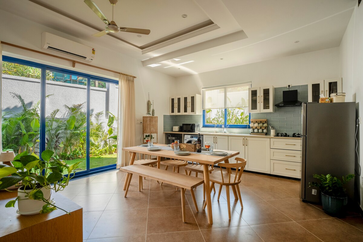 Situada al pintoresc poble de Moira, a North Goa, aquesta casa rural elegant, contemporània i còmoda és perfecta tant per a les vacances com per treballar. La casa rural independent totalment equipada amb aire condicionat té una àmplia sala d'estar oberta amb cuina completa, un dormitori amb bany privat i piscina. Té el seu propi jardí, seient i accés en cotxe, amb aparcament. Gaudeix de la pau i la tranquil·litat d'un poble de Goan mentre estàs a poca distància en cotxe de totes les principals atraccions de North Goa.
