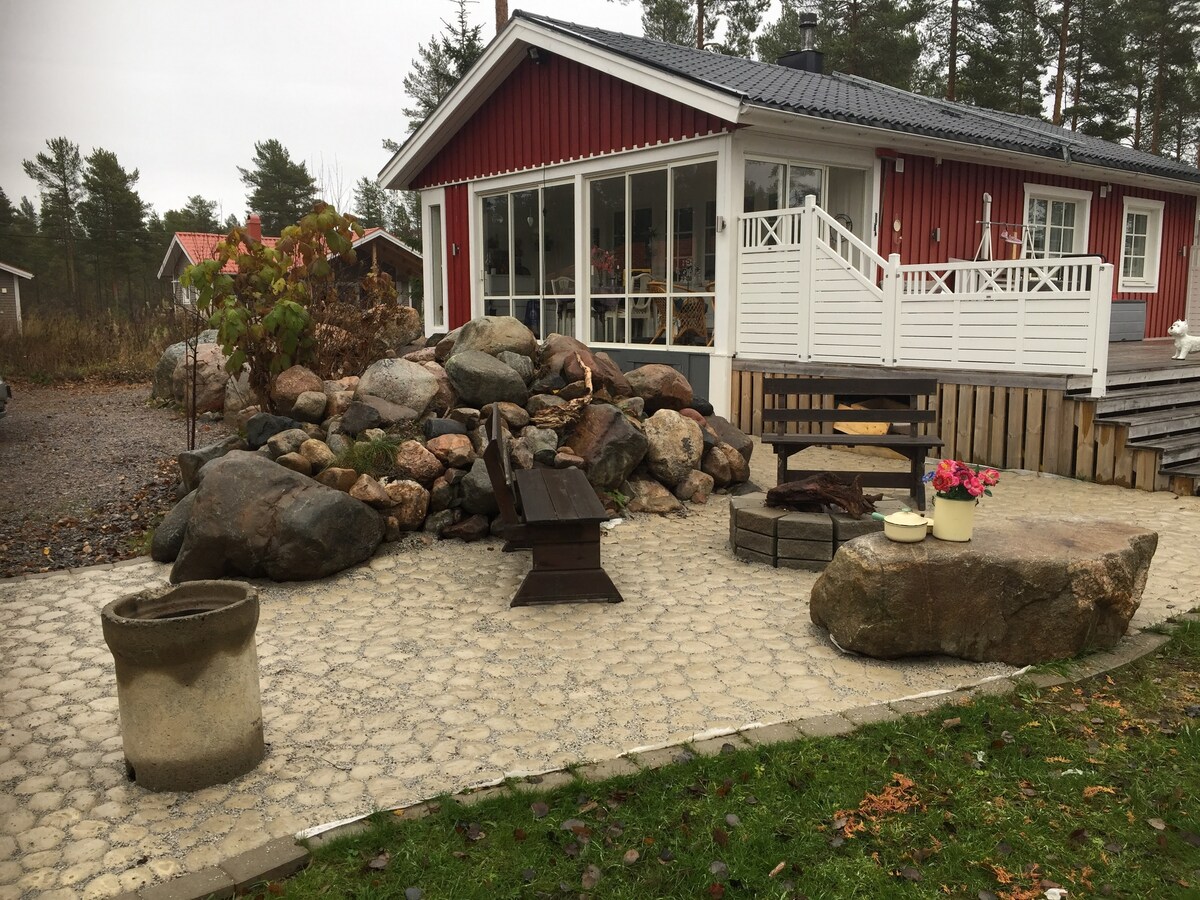 Una acollidora casa de 3 habitacions i cuina situada just al costat d'una de les millors platges de sorra de Skellefteå, envoltada d'un bosc encantador. La casa té una llar de foc de pedra tallada i grans finestres amb vistes al mar, així com comoditats com televisió, wifi, rentavaixelles i rentadora, i una cuina ben equipada. A la finca també hi ha una sauna, una pista de voleibol i una zona de barbacoa que oferim als nostres clients. Un lloc agradable i harmoniós durant tot l'any! Vivim a la casa del costat i ens assegurem que et sentis com a casa i que tinguis tot el que necessites. Benvingut!