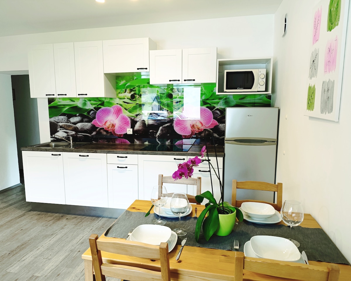 Nou, perfectament situat, just sota les pistes D'ESQUÍ (50 m); apartament de luxe modern i totalment moblat. A menys de 3 minuts de la part més encantadora del casc antic de Kranjska Gora i aparcament segur gratuït al garatge que hi ha sota el pis. Accés independent. Els matins assolellats i una vista preciosa i impressionant a les muntanyes t'asseguraran unes vacances de somni o només un bon descans. Totes les estacions una experiència inoblidable et portaran molt aviat :)