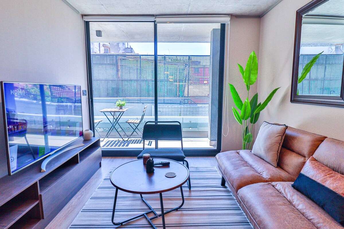 Acollidor i modern estudi situat a Las Condes, un dels sectors més segurs i tranquils de Santiago. Ideal per a aquells que visiten la ciutat per turisme o per feina i busquen comoditat, una excel·lent connectivitat i un ambient agradable. A només 3 minuts a peu del metro Hernando de Magallanes, envoltat de parcs, restaurants, cafeteries i centres comercials, aquest espai ofereix l'equilibri perfecte entre el descans i la vida urbana.