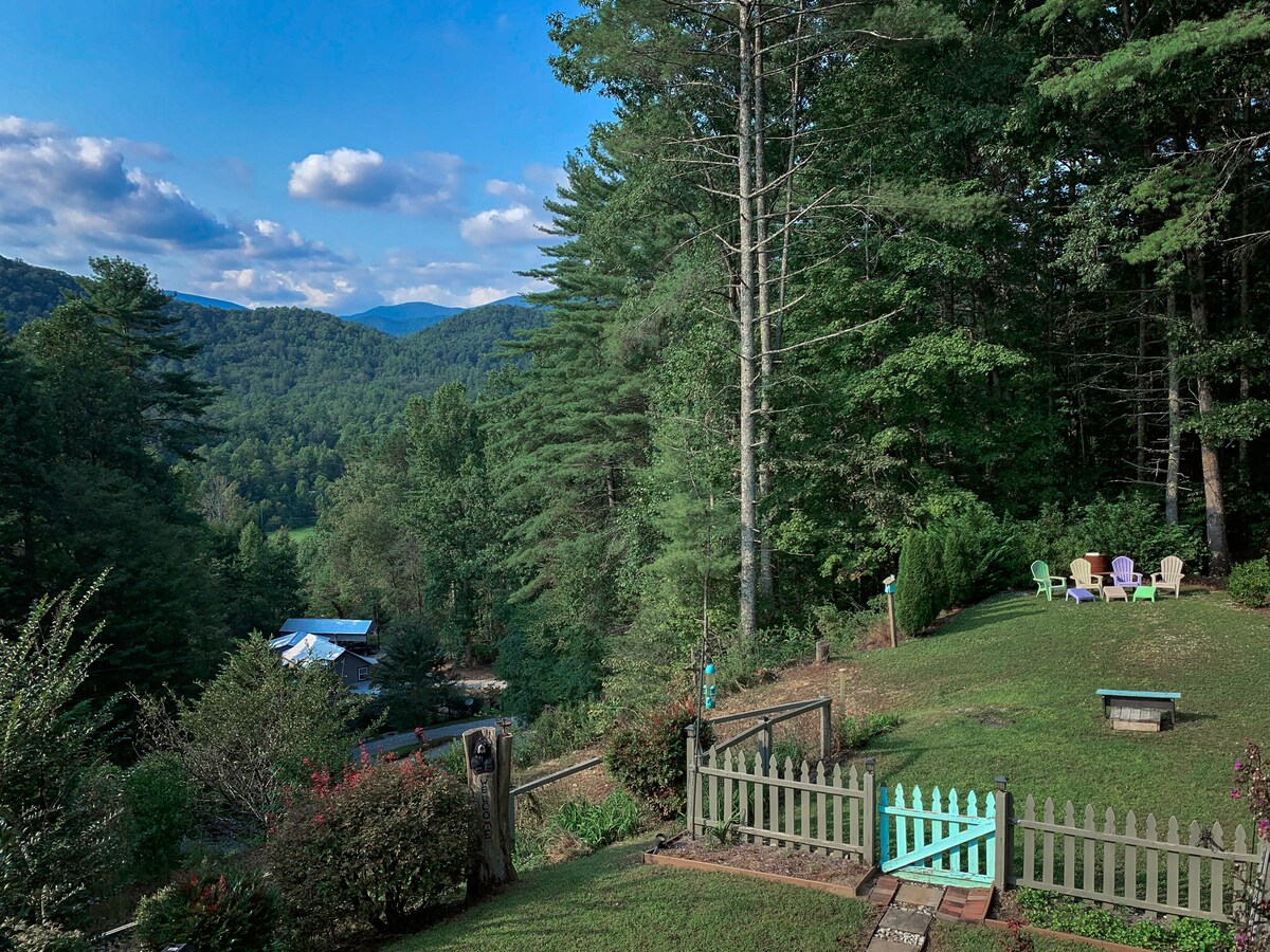 A més de 4000 peus i a només 10 minuts a peu de la ciutat per la ruta Rhododendron. Totalment renovat el 2017! Lluminós i assolellat 3 llits/2 banys, 750 peus quadrats Originalment construïda per l'àvia de la meva dona en la dècada de 1940. Xarxa del terra al sostre, sostres de 17 peus, fusta dura, fusta recuperada, accessoris personalitzats, terres de bany de marbre/pissarra climatitzats, escalfador d'aigua sense dipòsits, llar de foc de gas, porxo, wifi, televisor, rentadora/assecadora, cuina petita. Uns jardins preciosos! L'encant de les Highlands clàssiques amb comoditats modernes! Fes senderisme, pesca, compra o relaxa't!