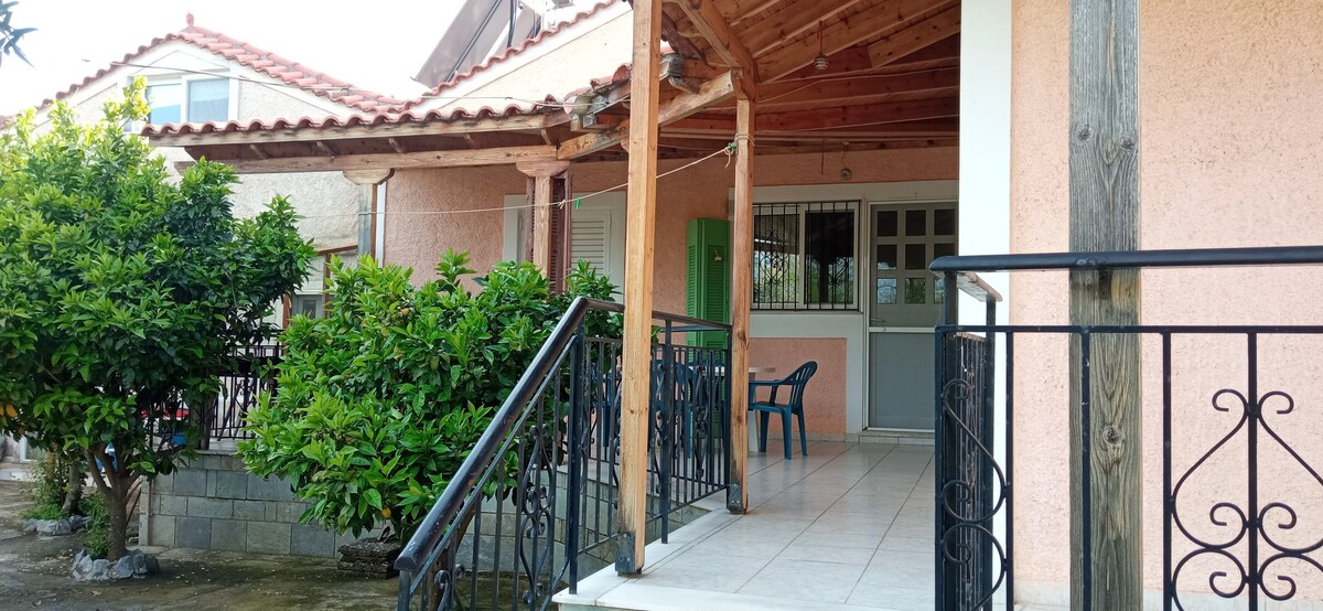 La masia està construïda al vessant d'una muntanya amb vistes a la platja de Kalamitsa, en una finca de 70 hectàrees. Consta de planta baixa i una planta. Tots dos nivells tenen dormitoris, banys, cuina i sala d'estar. L'accés a la planta és des d'una escala externa perquè els dos nivells siguin totalment independents i autònoms. Està totalment reformat i equipat amb tots els mitjans necessaris per gaudir d'una vida còmoda i moderna. La vista des de totes les obertures és única!